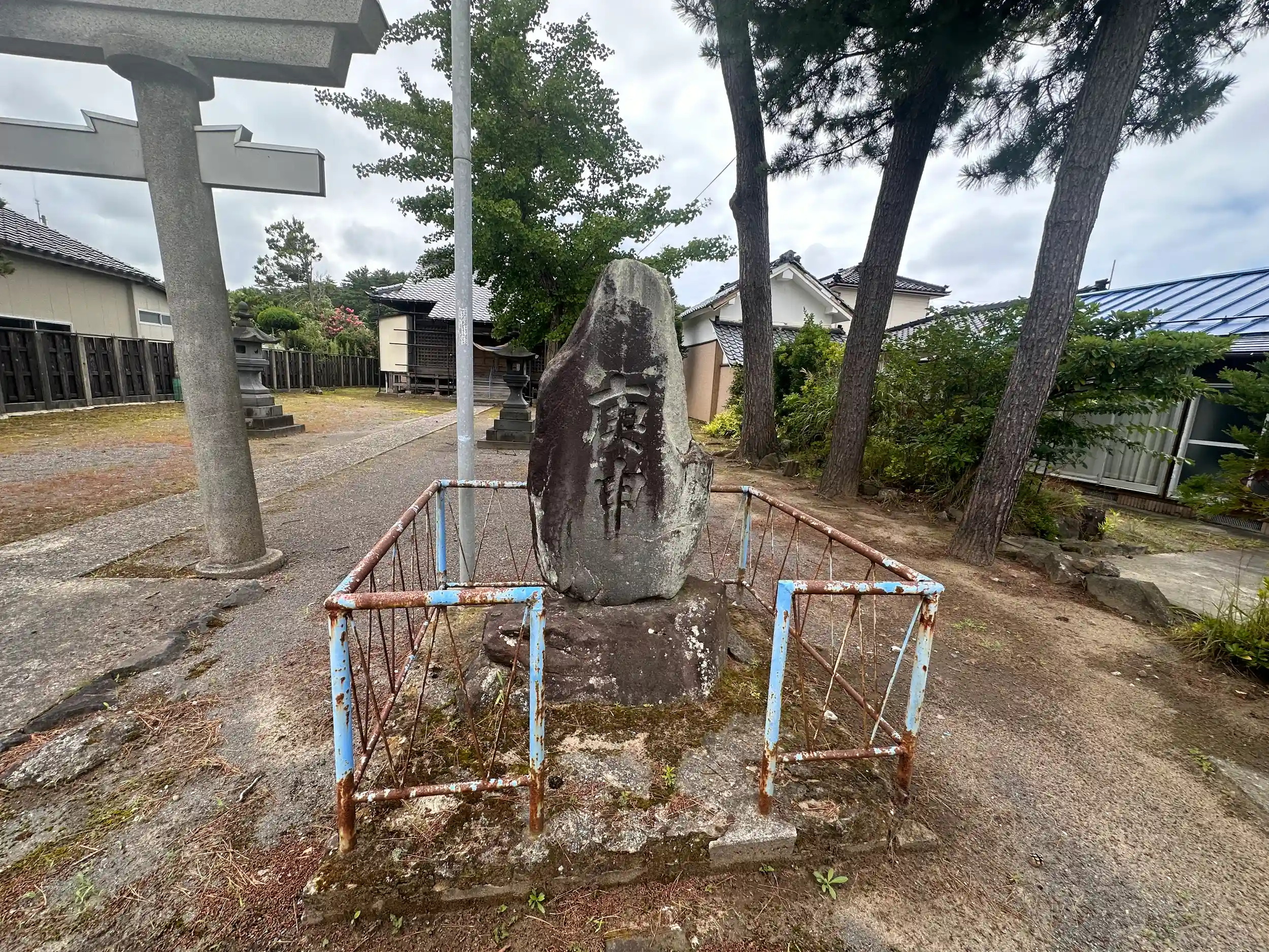 御祭神は倉稲魂命。鳥海大橋手前の県道353号線沿いに鎮座されています、ご由緒等は不明です、境内には庚申の石碑がありました