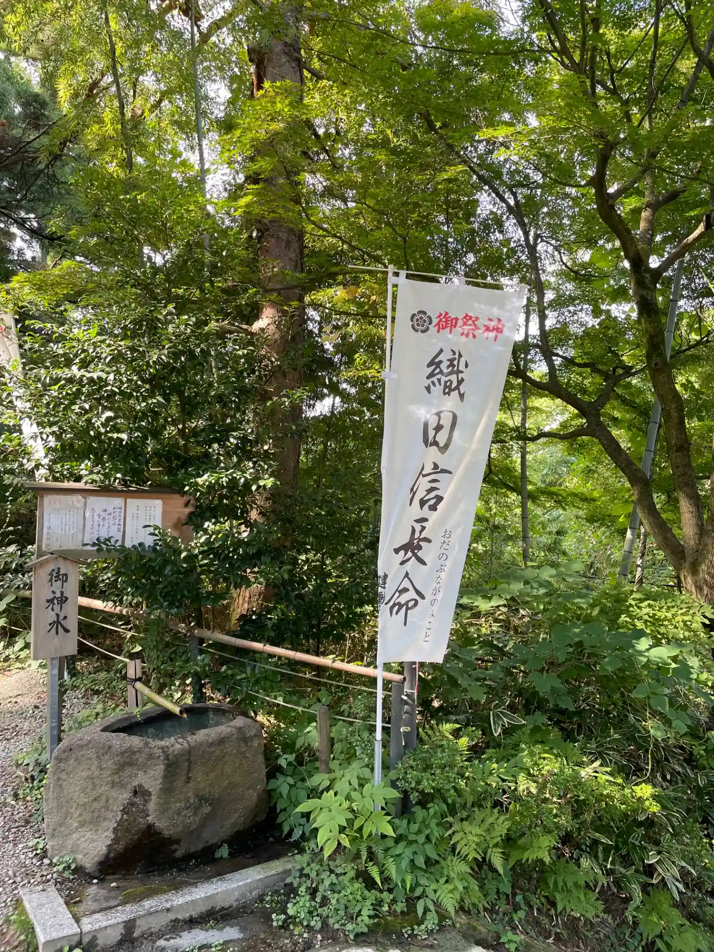織田信長を祀っているのが珍しいと思いました。改修中でした。朝一の参拝で、ちょうど宮司さんいらして、御朱印いただくことができました。