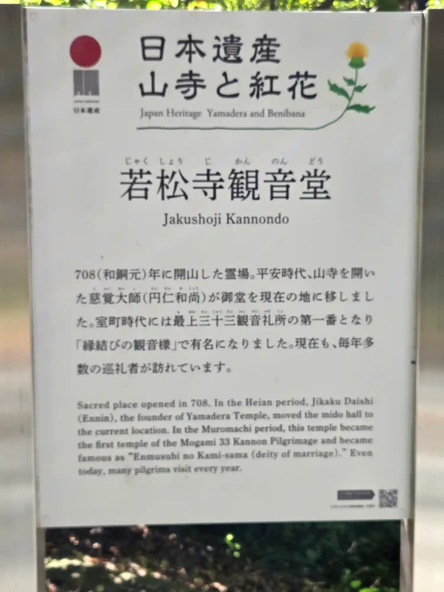 若松寺観音堂の簡単な説明書です。