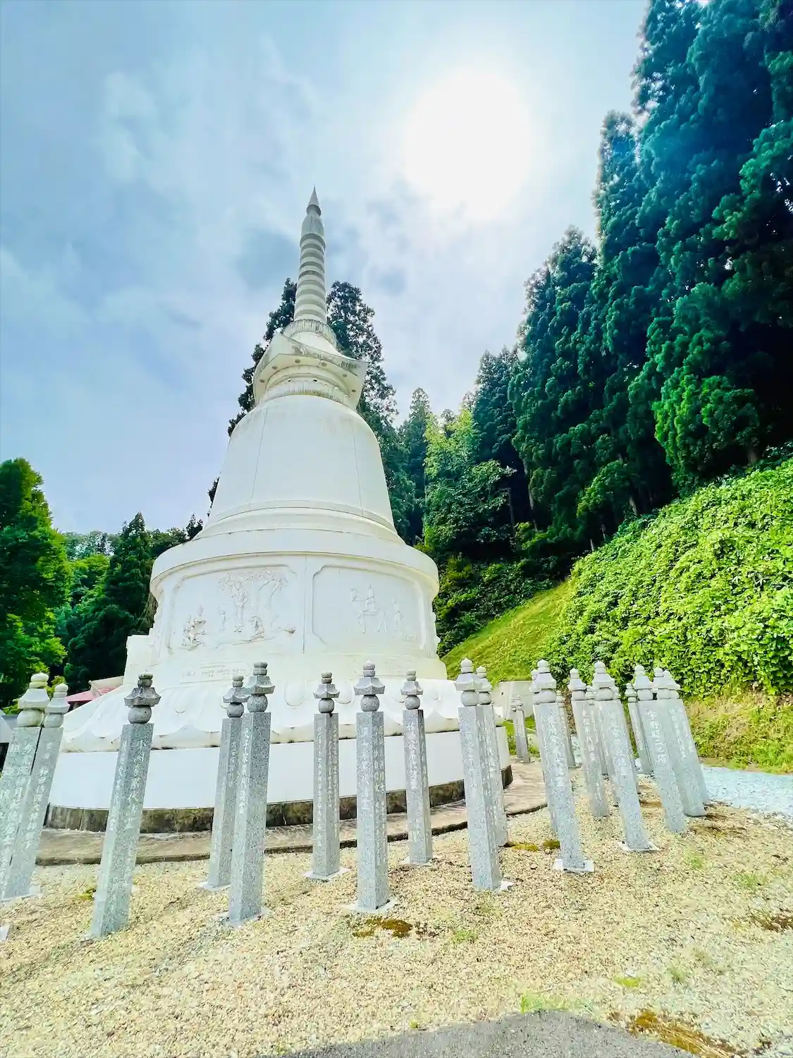 山形県北村山郡大石田町に境内を構える、黒瀧山向川寺、どの様な寺院か引用を用いて調べて見ました、山号は黒瀧山、寺号、院号は向川寺、宗派は曹洞宗、御本尊は釈迦牟尼仏、奥の細道 みちのく路三十三ヵ所霊場 第二十番札所、尾花沢・大石田三十三観音霊場第一番札所、札所本尊は如意輪観世音菩薩、松尾芭蕉縁の寺で有名、向川寺(黒瀧)に参詣した事が「発・一巡終テ、翁両人誘テ黒瀧ヘ被参詣」と曽良随行日記に書かれています。東北地方一円に28の末寺をもつ曹洞宗の名刹永和3年(1377年)大徹禅師開山。、徹宗令禅師は曹洞宗の大本山総持寺(現在の総持寺祖院:石川県輪島市)2世峨山禅師の五哲に数えられた名僧で直弟子である日山良旭(向川寺2世)を伴って東北各地で曹洞宗を布教し多くの寺院を開山しています。向川寺は大本山総持寺の直末寺で東北の中では中本山にあたる為、山形県内だけでなく秋田県や宮城県にその勢力が及んだとされ、往時は末寺は28ヵ寺、孫寺は百ヵ寺以上を擁し、全盛時には天台宗の山寺立石寺と肩を並べたとも言われ、山内に様々な堂宇が建ち並び壮大な伽藍だったと伝えられています。応永八年(1401)や寛永14年(1637)、文化4年(1807)に大きな火災が起こり、多くの建物や寺宝、書物、資料などが焼失し徐々に衰退、現在残されている苔生した参道や、周辺に残る数多く石仏や石碑が往時の名残とされます(現在200基前後が確認されています)