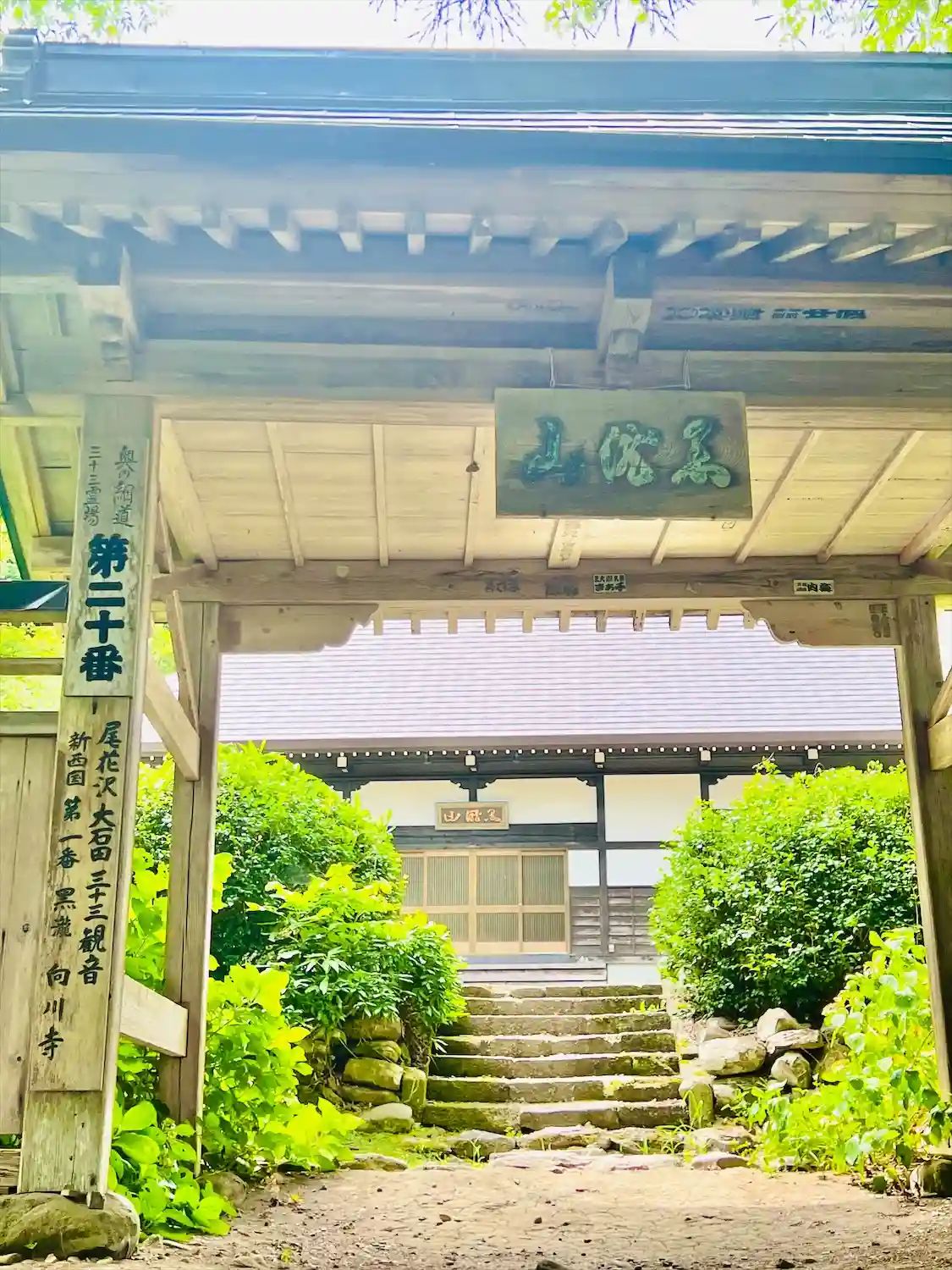 山形県北村山郡大石田町に境内を構える、黒瀧山向川寺、どの様な寺院か引用を用いて調べて見ました、山号は黒瀧山、寺号、院号は向川寺、宗派は曹洞宗、御本尊は釈迦牟尼仏、奥の細道 みちのく路三十三ヵ所霊場 第二十番札所、尾花沢・大石田三十三観音霊場第一番札所、札所本尊は如意輪観世音菩薩、松尾芭蕉縁の寺で有名、向川寺(黒瀧)に参詣した事が「発・一巡終テ、翁両人誘テ黒瀧ヘ被参詣」と曽良随行日記に書かれています。東北地方一円に28の末寺をもつ曹洞宗の名刹永和3年(1377年)大徹禅師開山。、徹宗令禅師は曹洞宗の大本山総持寺(現在の総持寺祖院:石川県輪島市)2世峨山禅師の五哲に数えられた名僧で直弟子である日山良旭(向川寺2世)を伴って東北各地で曹洞宗を布教し多くの寺院を開山しています。向川寺は大本山総持寺の直末寺で東北の中では中本山にあたる為、山形県内だけでなく秋田県や宮城県にその勢力が及んだとされ、往時は末寺は28ヵ寺、孫寺は百ヵ寺以上を擁し、全盛時には天台宗の山寺立石寺と肩を並べたとも言われ、山内に様々な堂宇が建ち並び壮大な伽藍だったと伝えられています。応永八年(1401)や寛永14年(1637)、文化4年(1807)に大きな火災が起こり、多くの建物や寺宝、書物、資料などが焼失し徐々に衰退、現在残されている苔生した参道や、周辺に残る数多く石仏や石碑が往時の名残とされます(現在200基前後が確認されています)