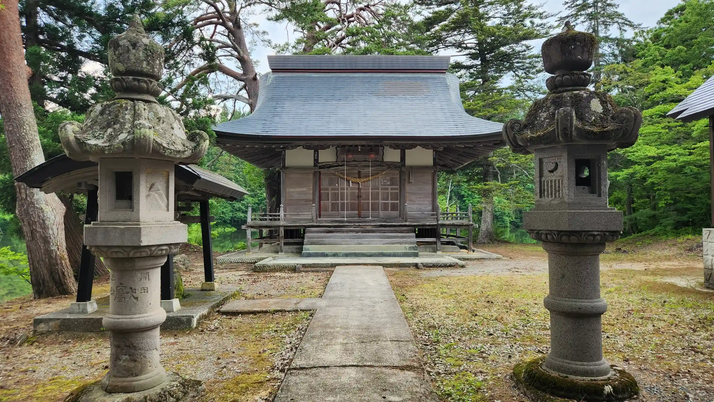 この神社は長沼湖畔に拝殿・本殿が、中之島に奥の院が鎮座するという、未だ嘗て経験したことのない、建立方法の珍しい神社です。