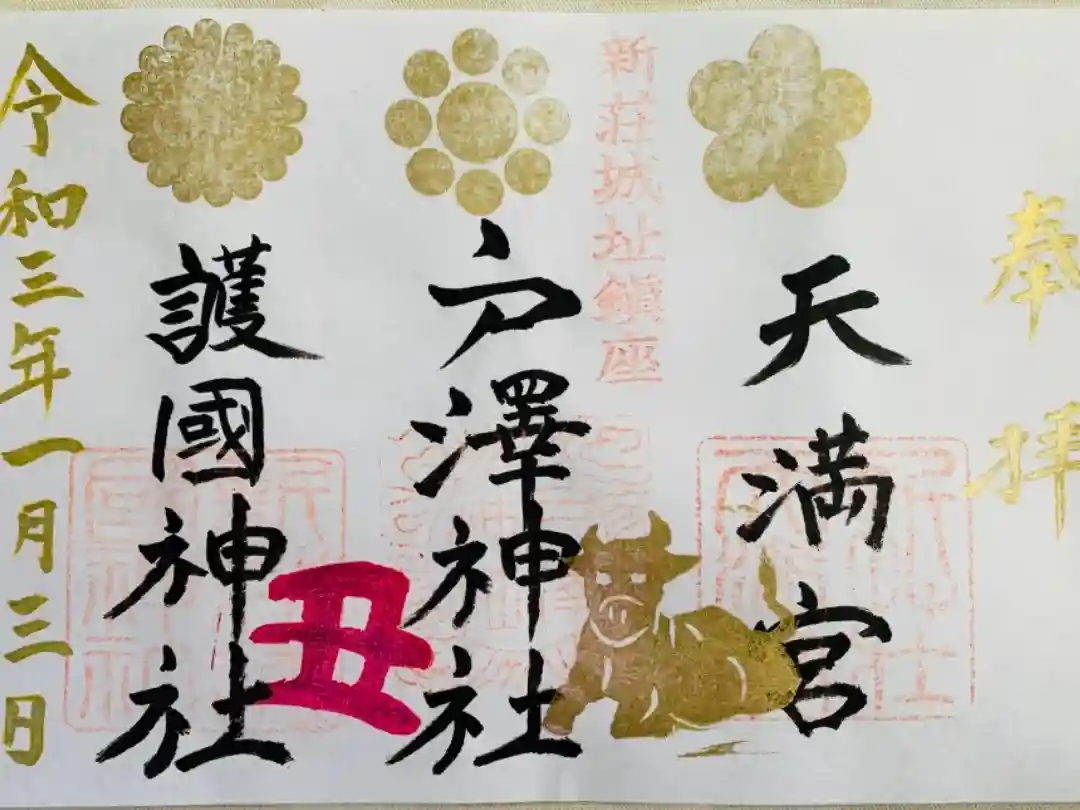 新庄天満宮、戸澤神社、新庄護国神社の見開き御朱印になります。