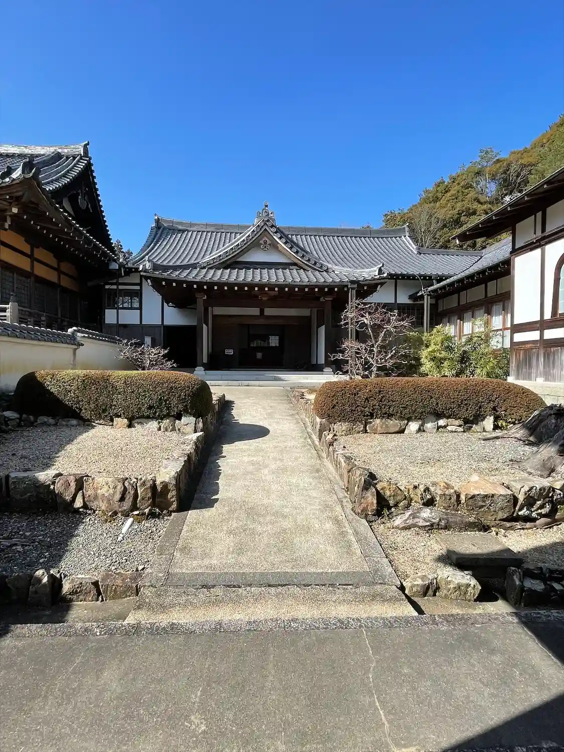 本堂を臨む:北東部奥深くには瀧石が組まれています。