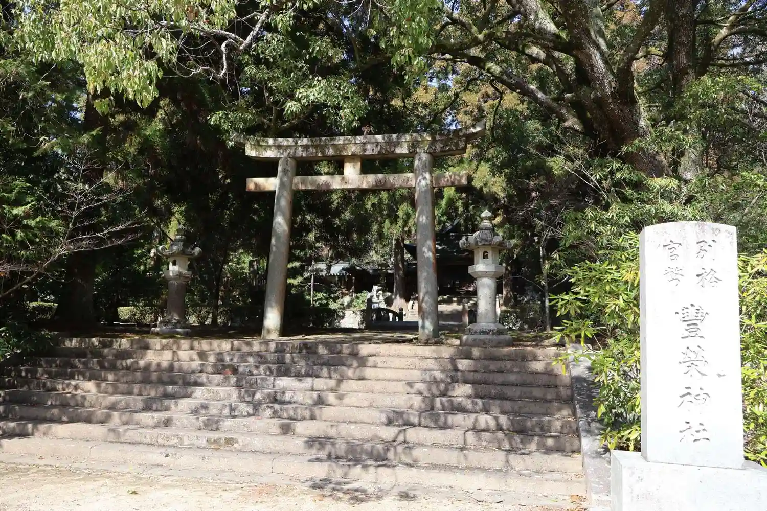 大正四年(1915)建立の一の鳥居(豊栄神社の鳥居も兼ねています)