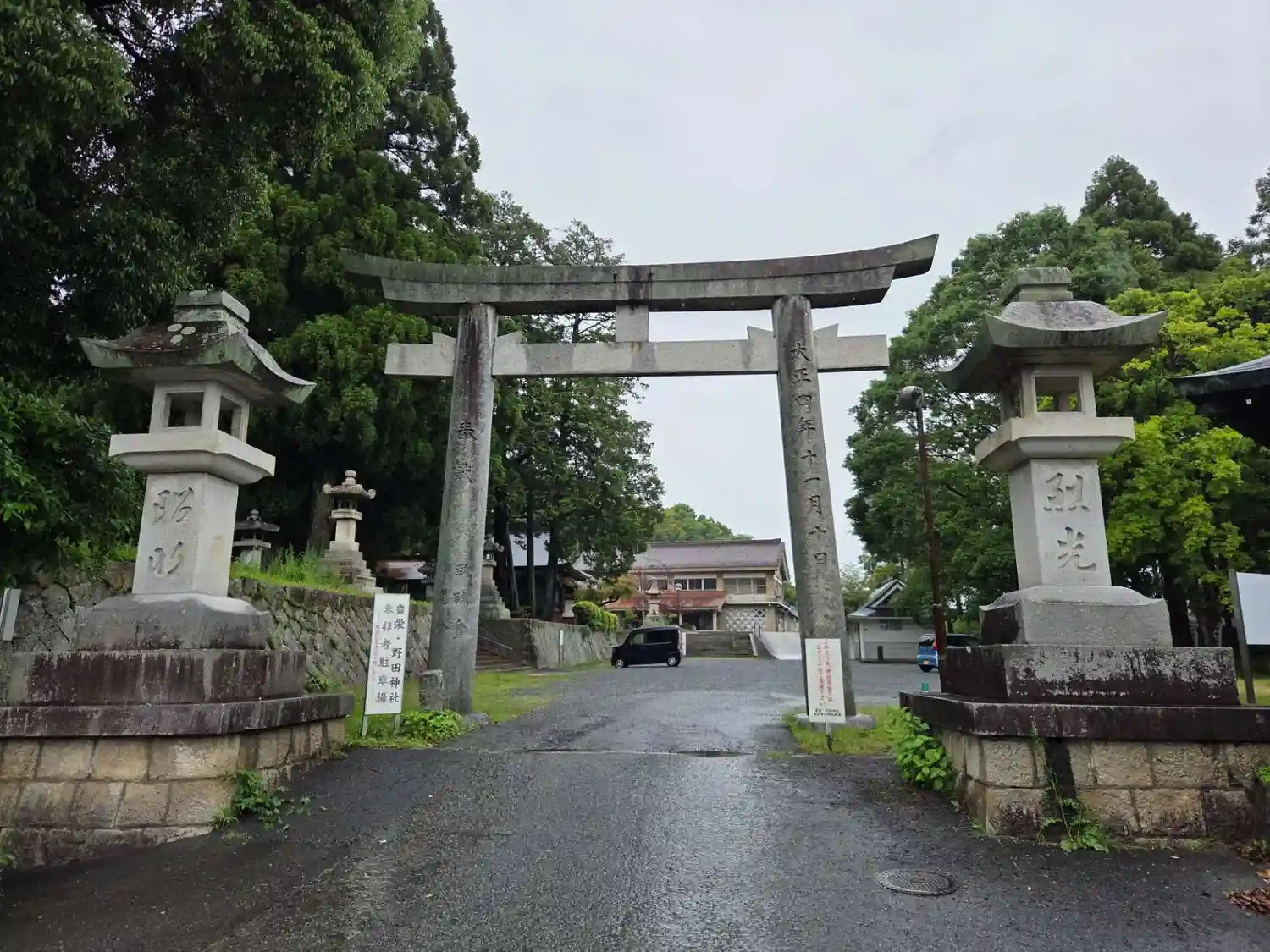 大正五年(1916)奉納の二の鳥居 柱の葉山形有朋や寺内正毅などそうそうたる名前が奉納者として刻まれているはずでしたが、参拝時が一番雨がひどく、見る余裕など有りませんでした