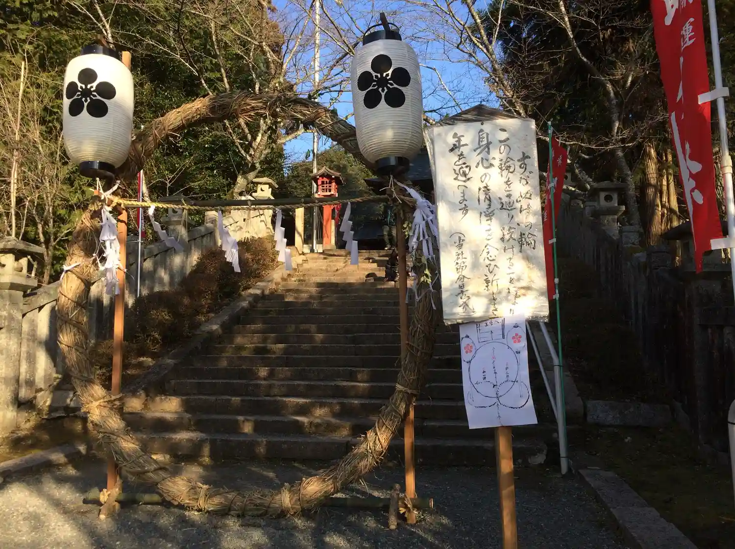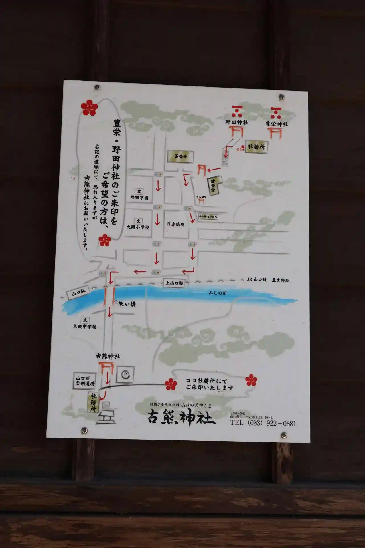 野田神社社務所に貼ってあった案内板。隣には何故かホームカメラが設置されていました。