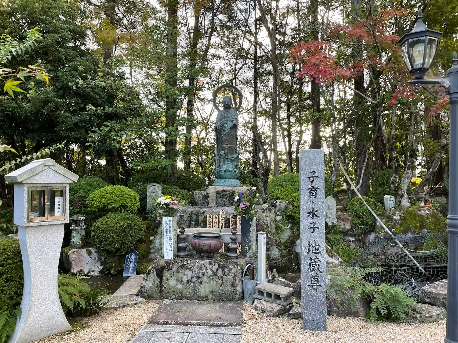 本堂の改修中で屋根が綺麗になっていました。紅葉が始まっていましたが、季節外れのサ…