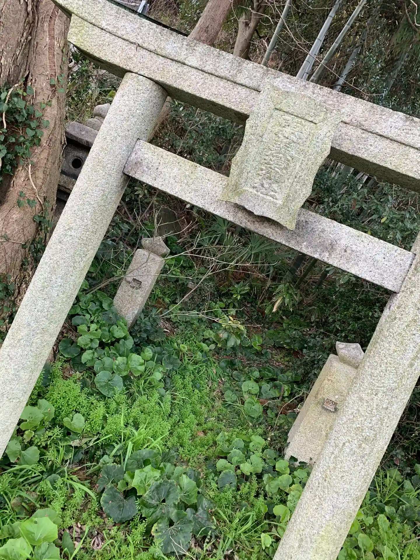 跡地内 鳥居の先は藪で