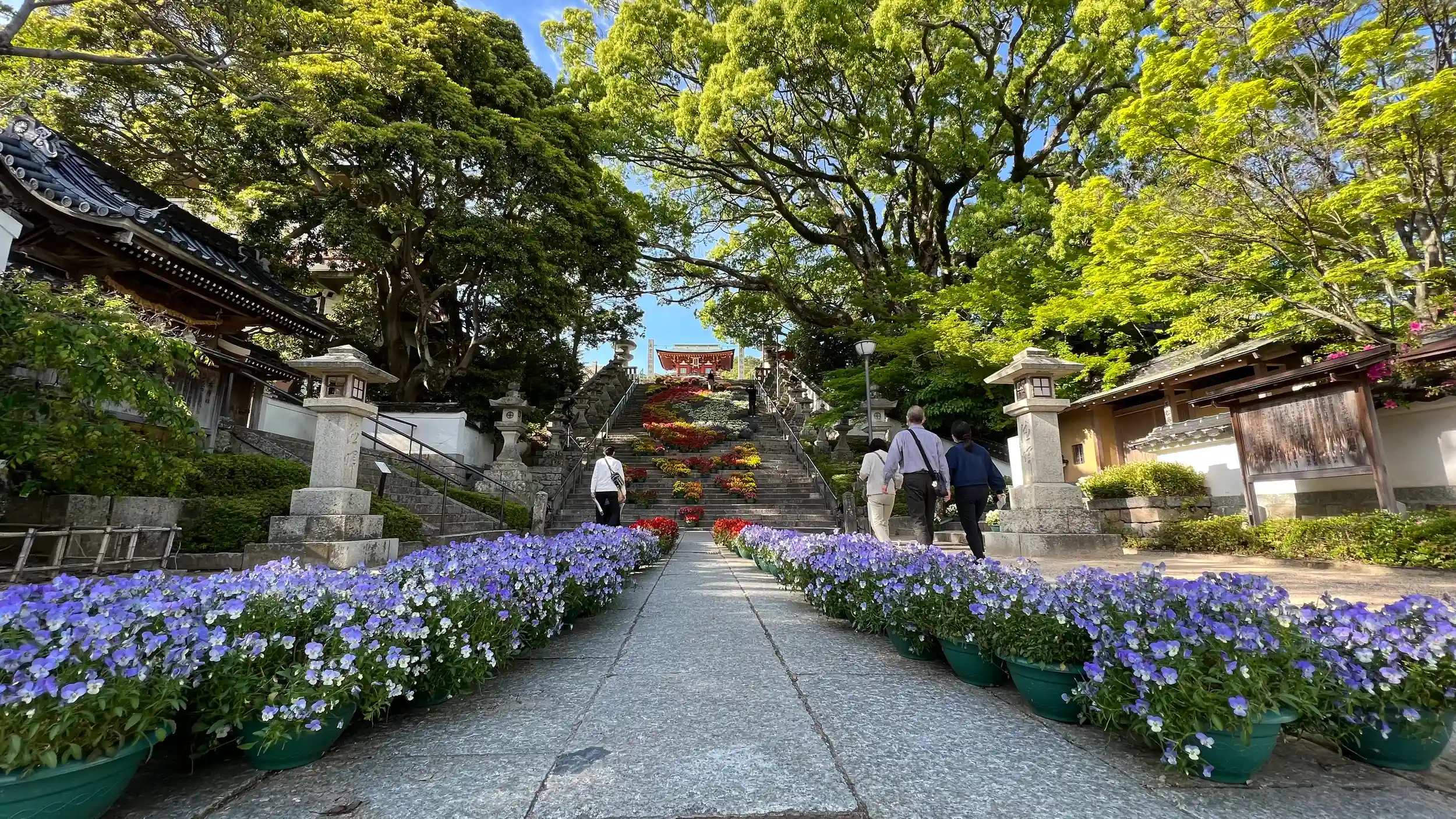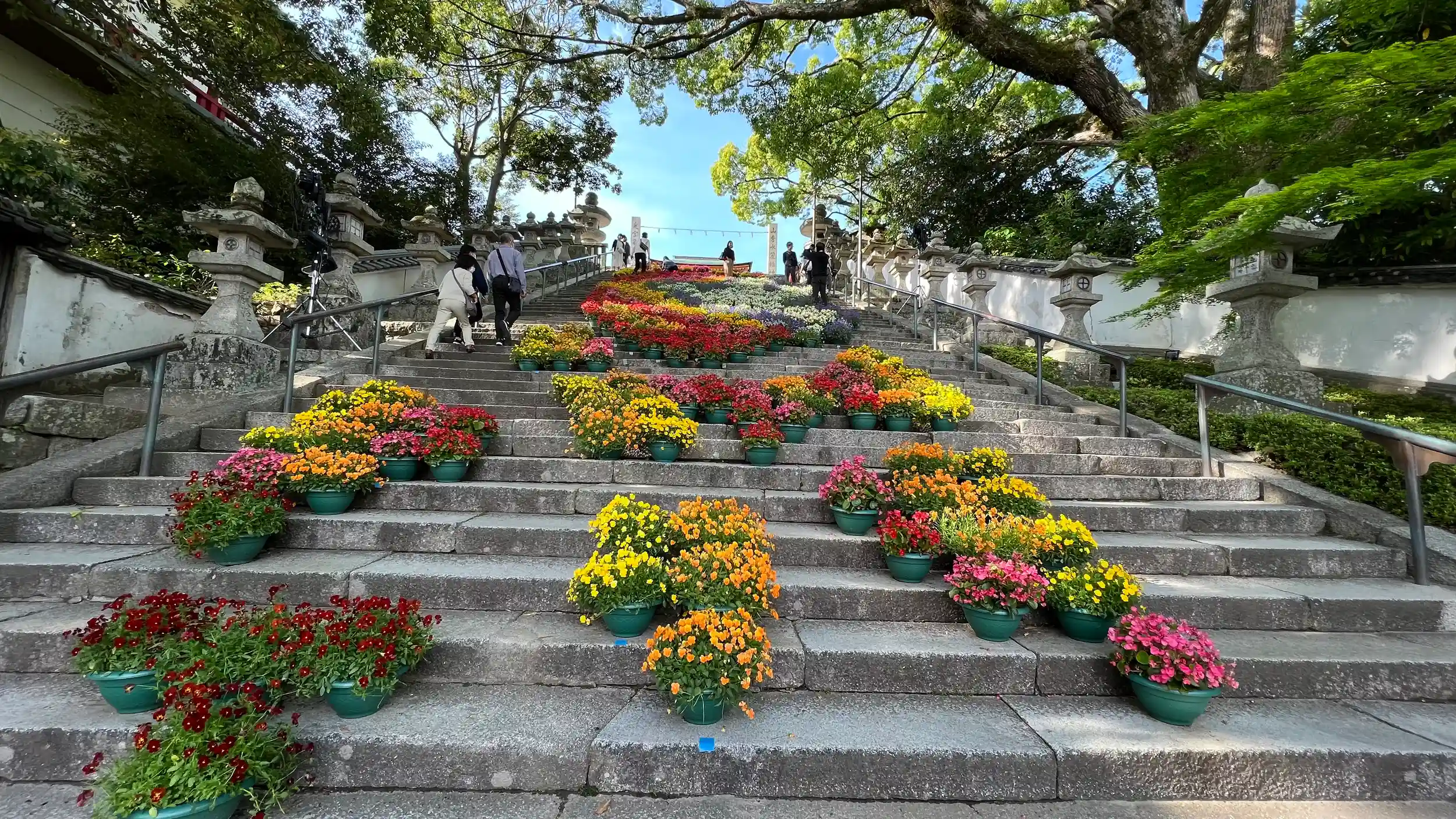 石階段に花の鉢植えが置かれてて可愛くおしゃれ〜な、ばえスポット!って感じなんだけど絶妙に歩きにくい笑