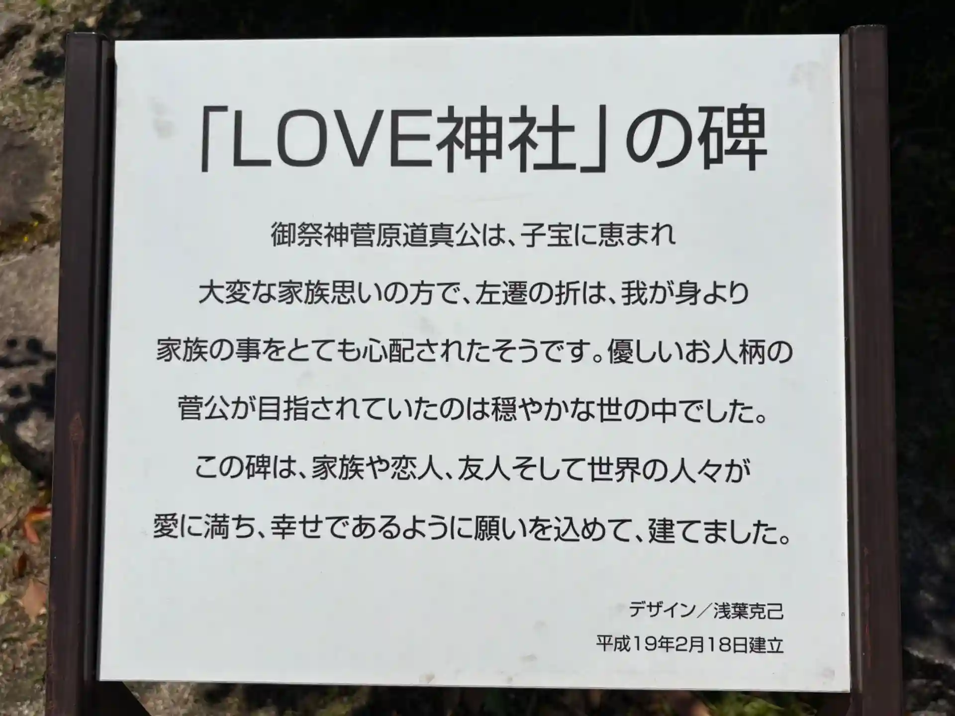 防府天満宮〜LOVE神社の碑の説明書き