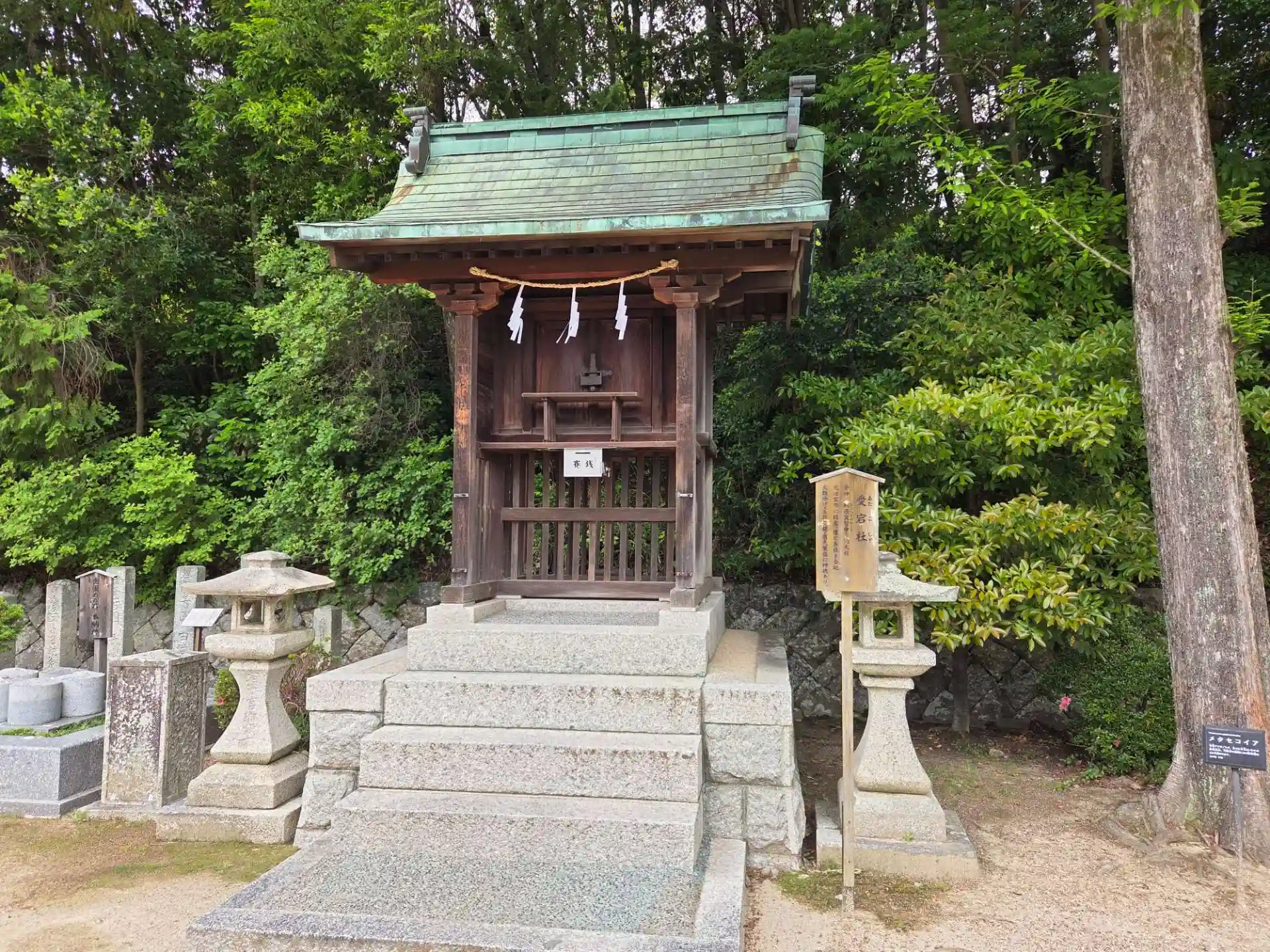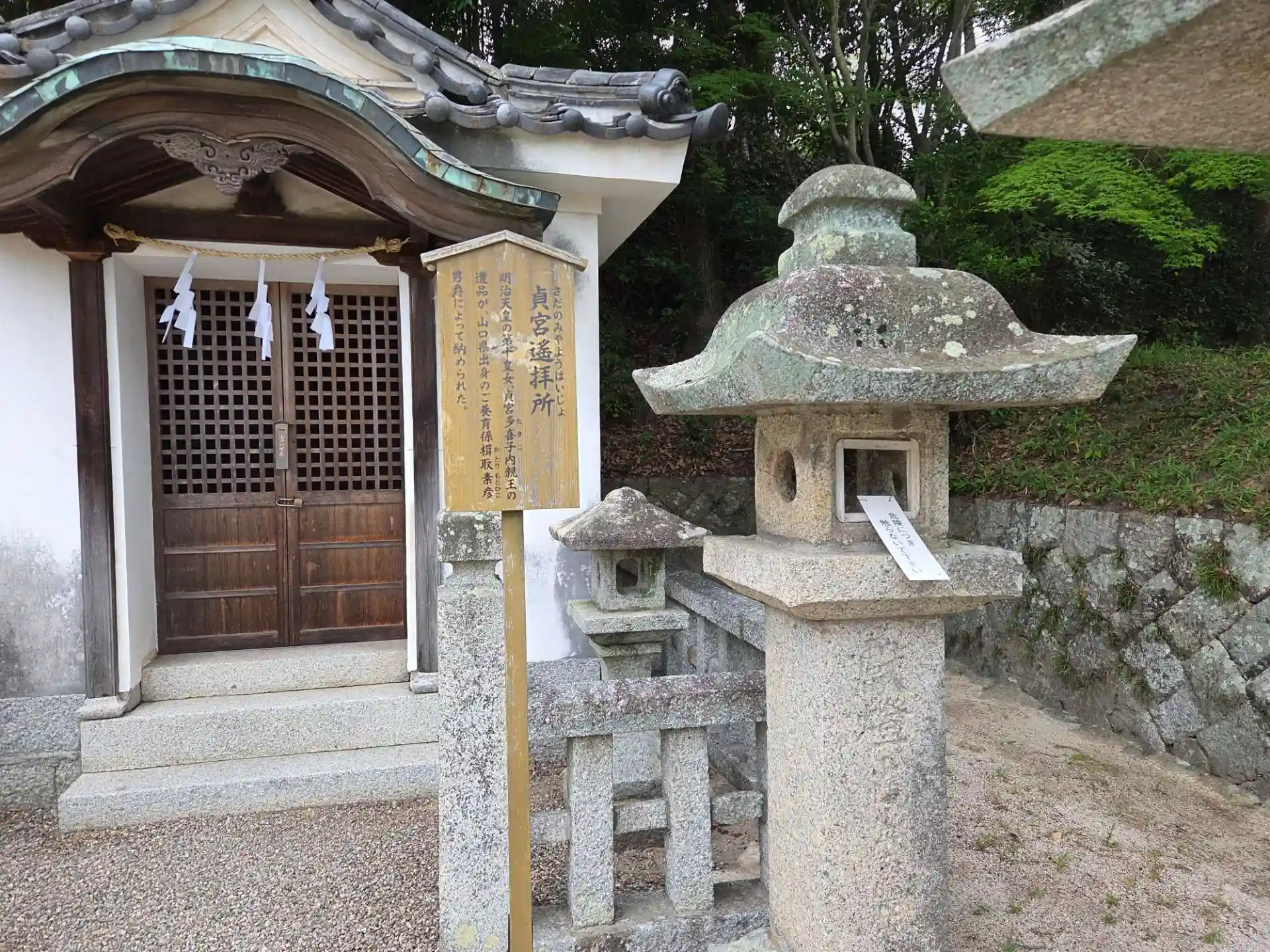 貞宮遥拝所 明治天皇第十皇女の貞宮多喜子内親王が数え三歳で夭逝され、養育主任だった楫取素彦氏が御遺物を譲り受け、明治三十二年(1899)に建立。中には内親王の御遺物が納められています