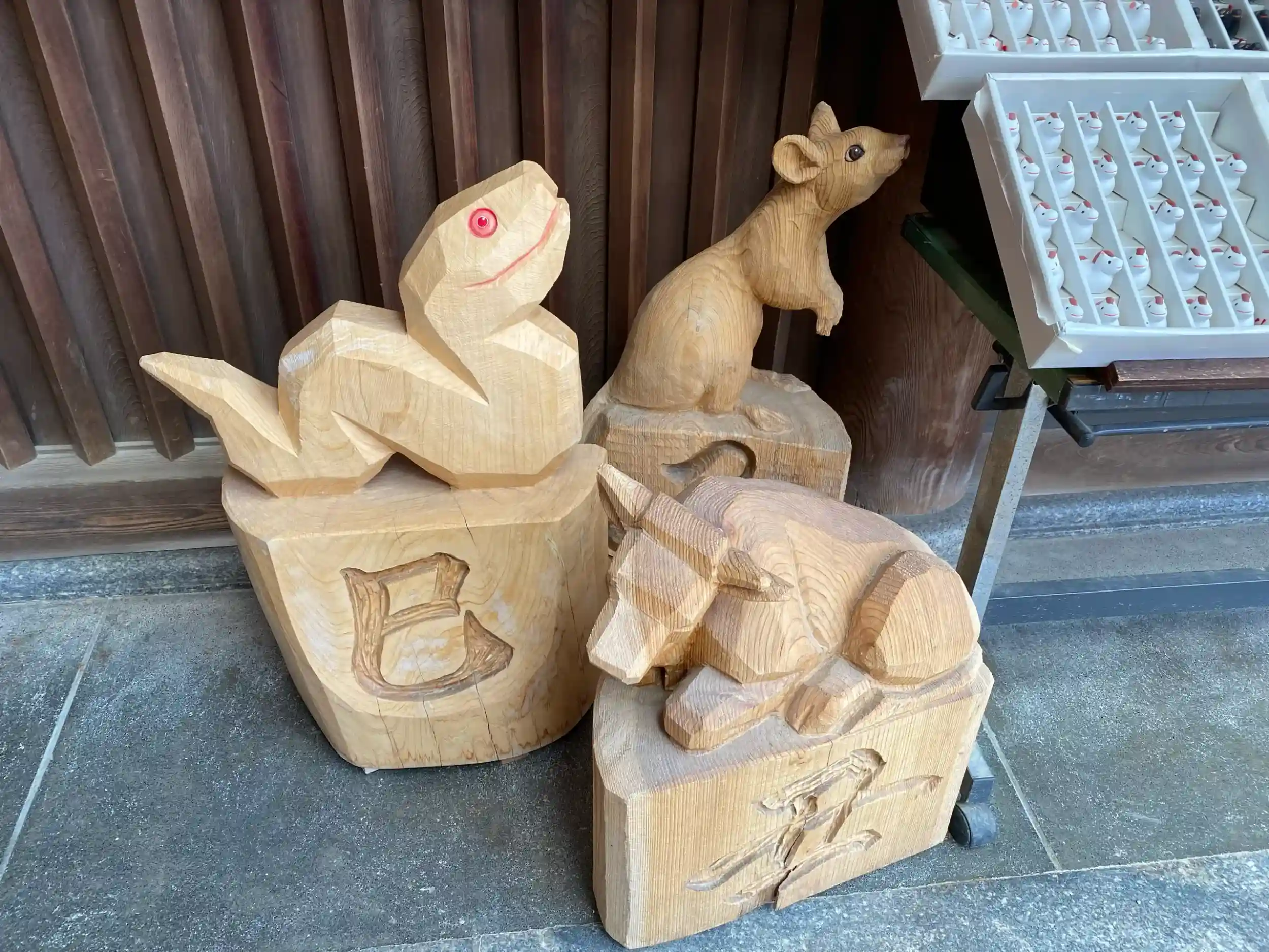 木彫りの干支が、羊と馬が見つけられず残念。
