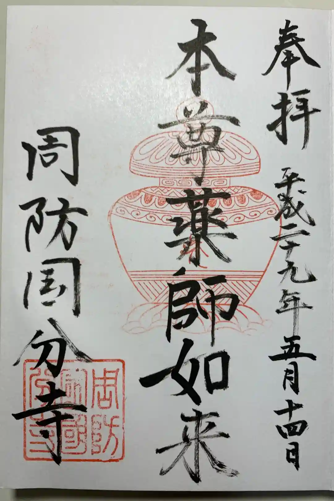 本尊薬師如来の直書き御朱印