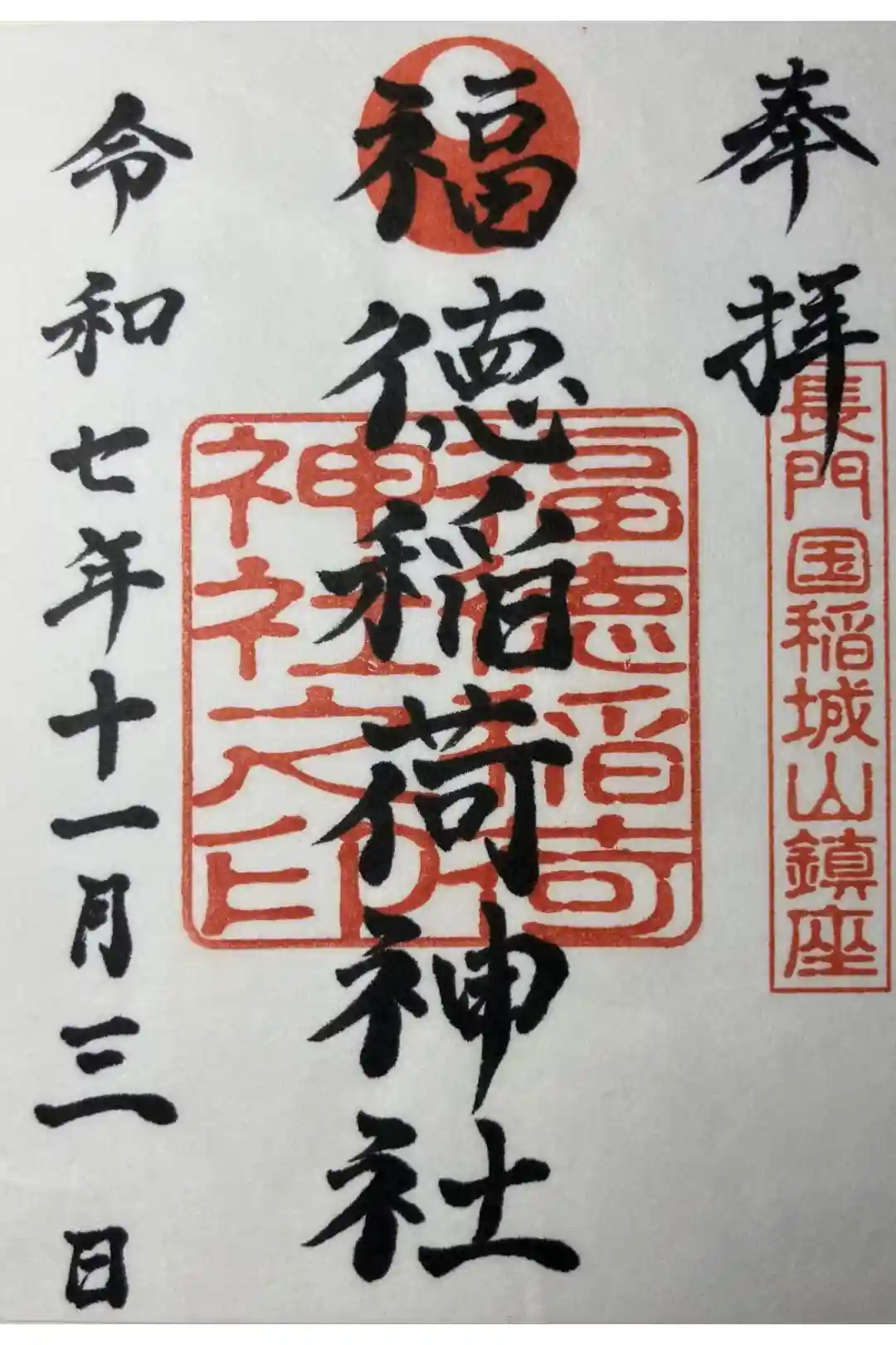 福徳稲荷神社(ふくとく・いなり~)は、山口県下関市豊浦町大字宇賀にある神社。祭神は倉稲魂大神(谷川稲荷;下社合祀)、大宮能賣大神(谷守稲荷:中社)、大市比賣大神(谷嶽稲荷:奥社)。