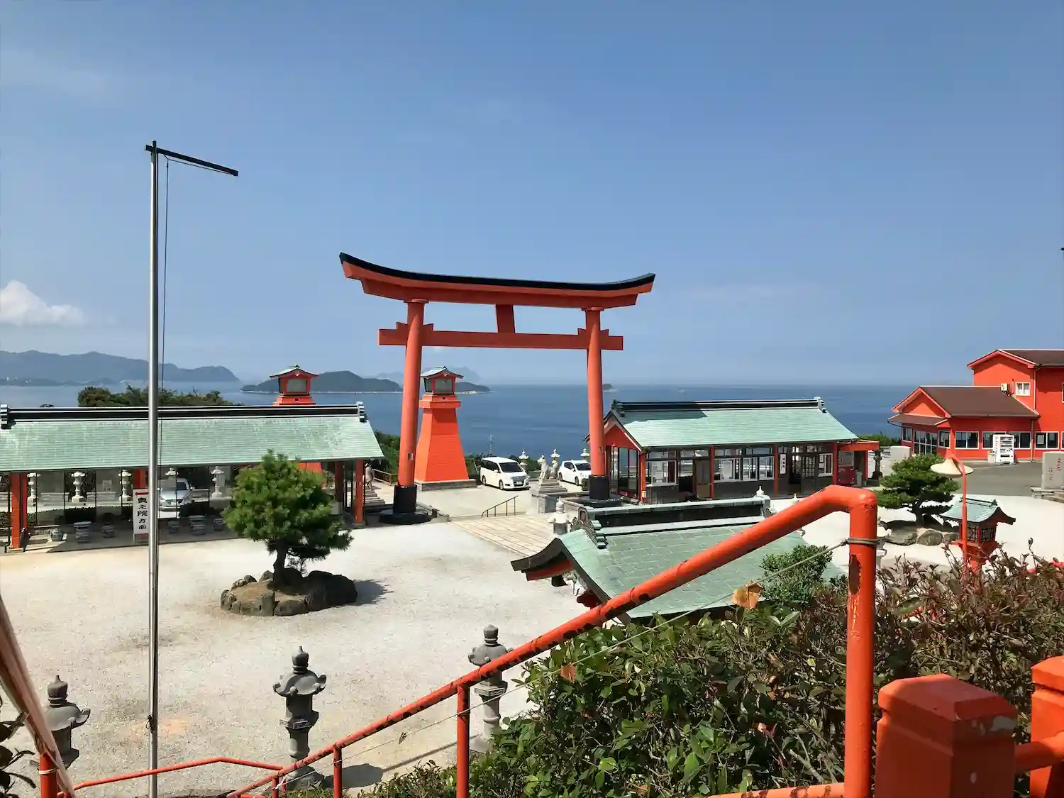 この地は古くから景勝地として知られ、本殿から見る響灘の景色はすばらしく、絶好のビューポイントとなっている。