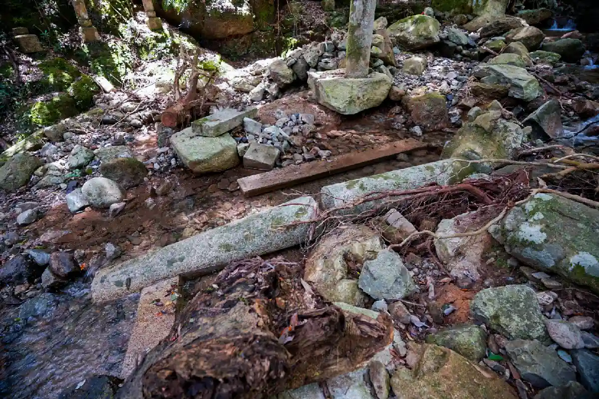 この辺りは流されることなく石段が残っていました