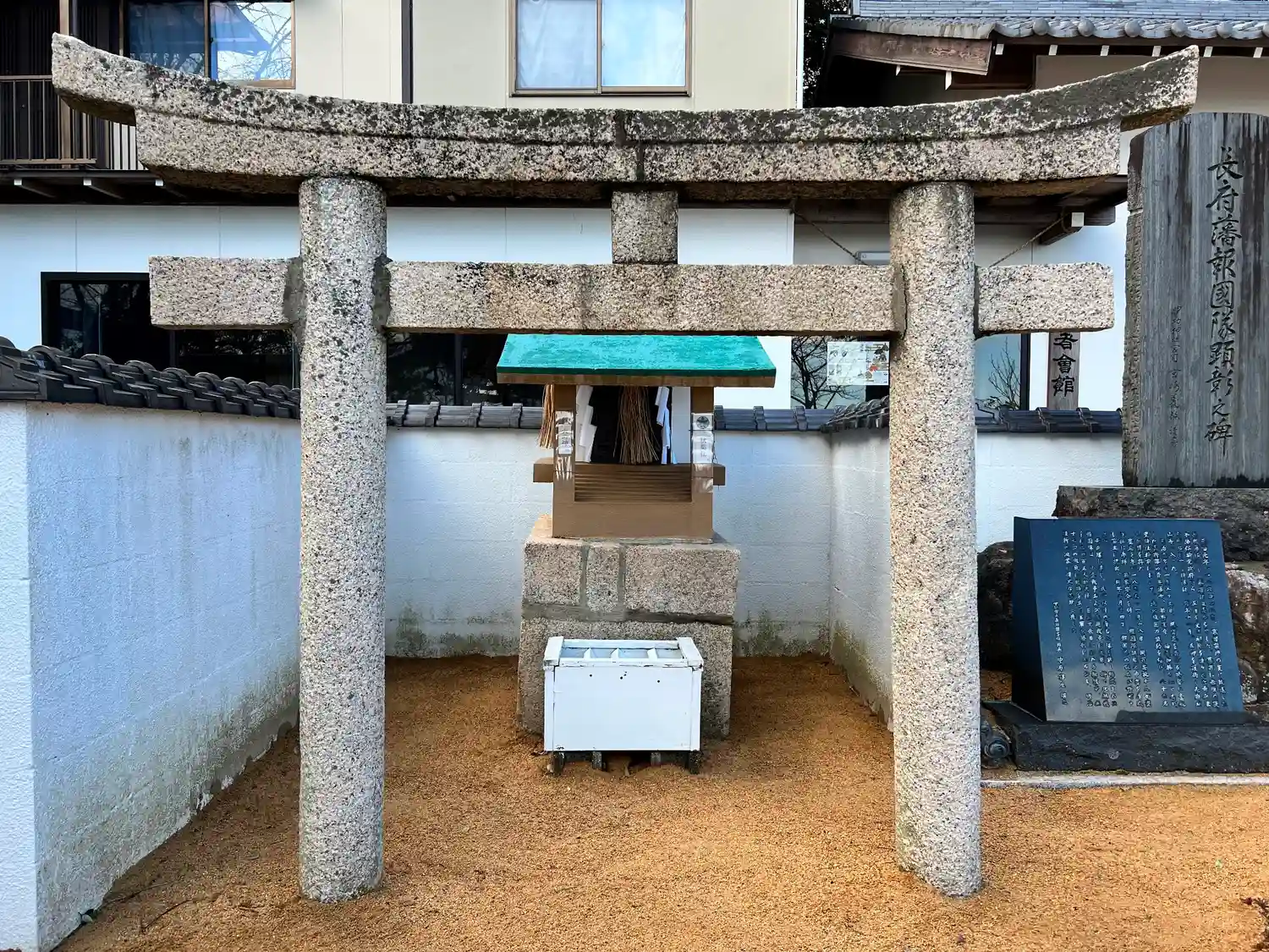 龍神社の左手にある<茶筅塚>。うしろは<社務所>みたい。