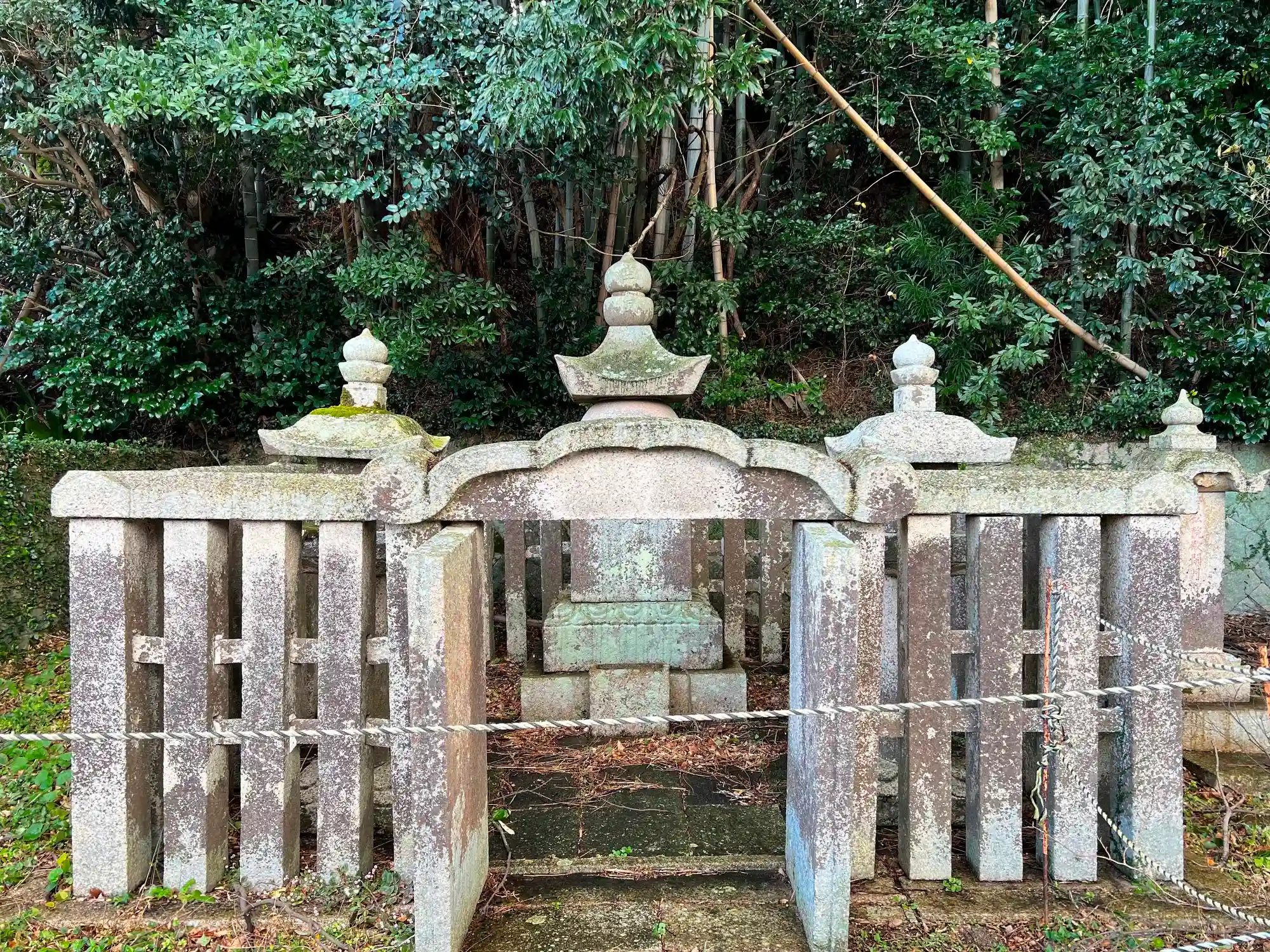 十三重塔の奥、森の手前ににある<2代藩主・毛利光広公の墓>。