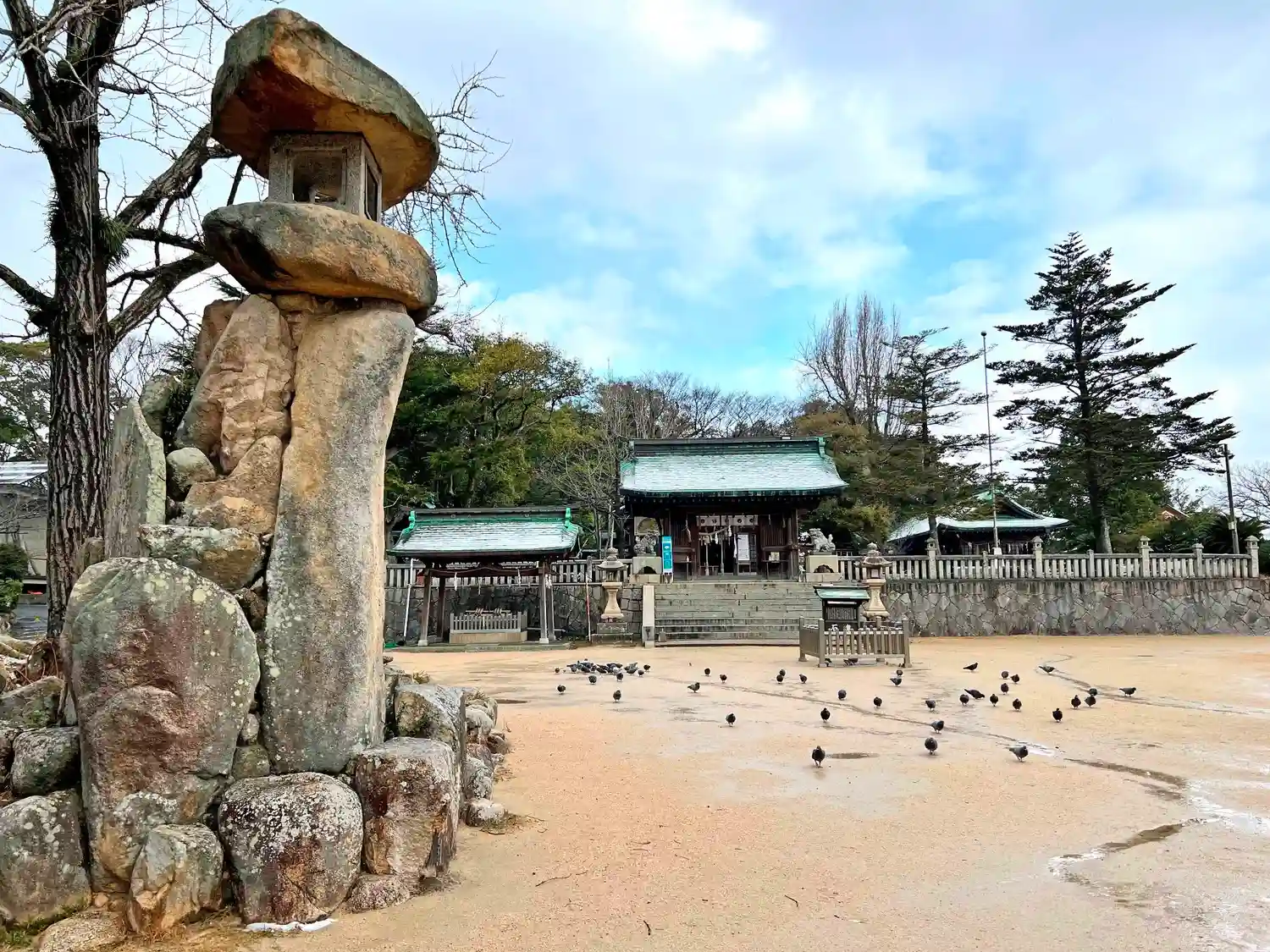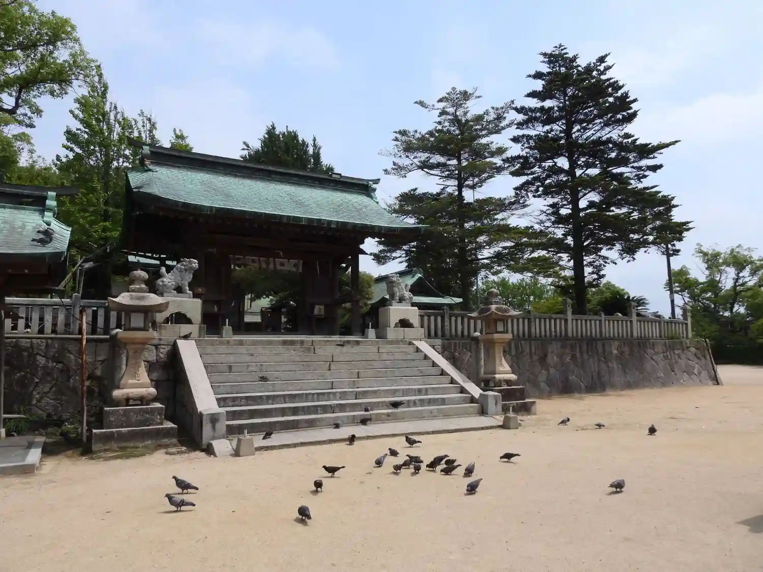 広々とした境内は、非常にきれいに掃き清められている。闊歩する鳩たちも気持ち良さそう。