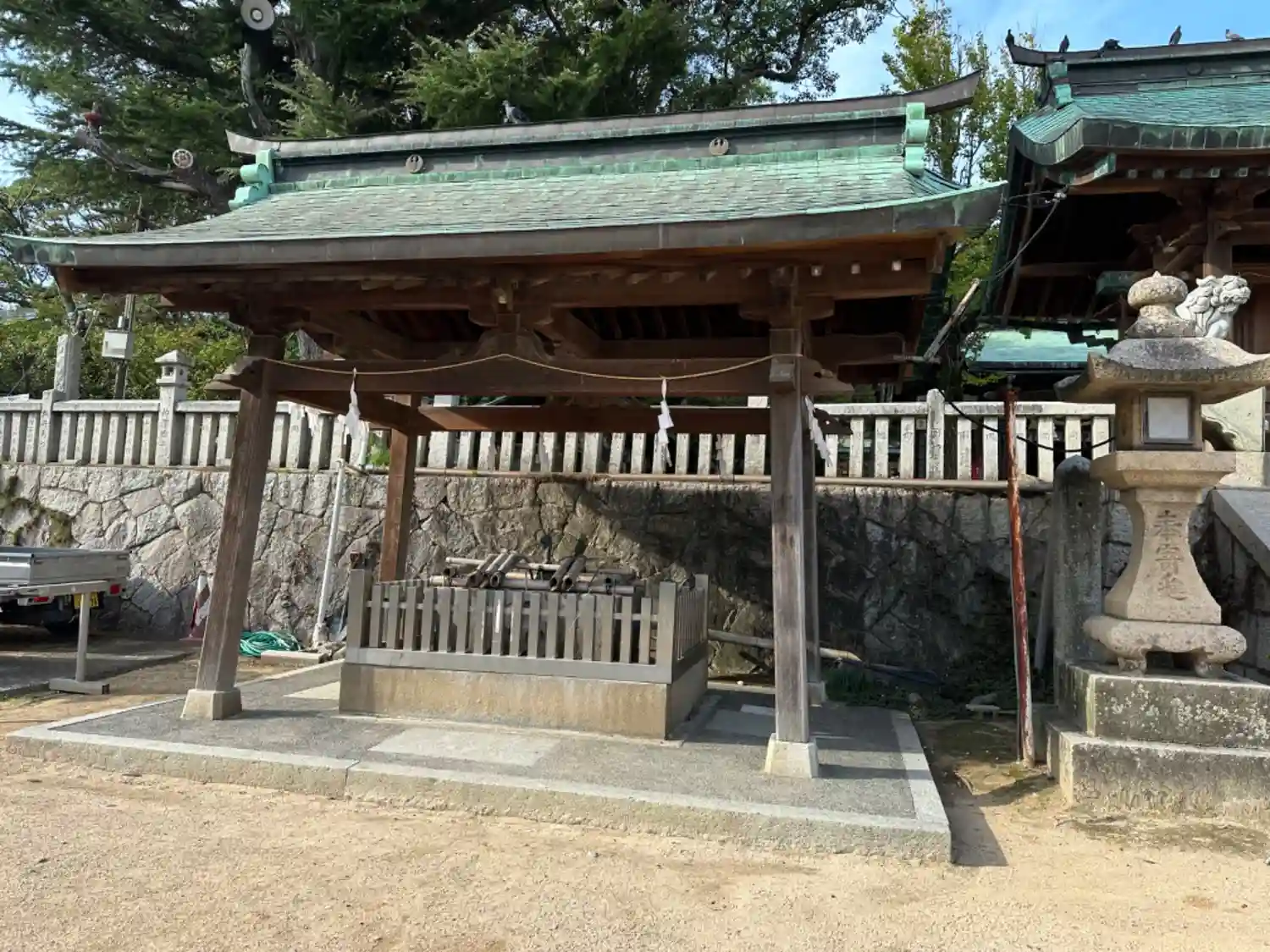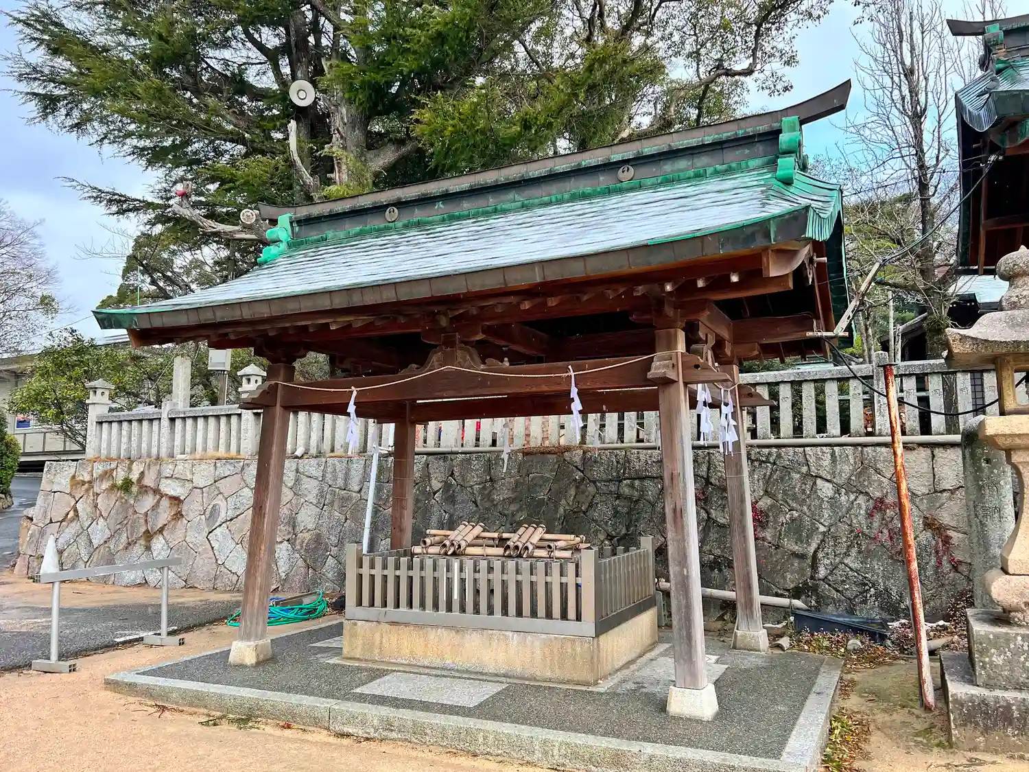 神門前の階段の左手にある<手水舎>。