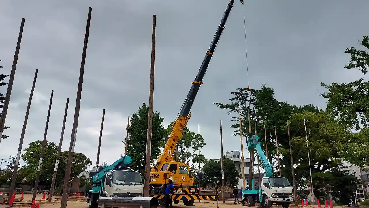 本日、数方庭祭用の安全柵の建て込みが始まりました。