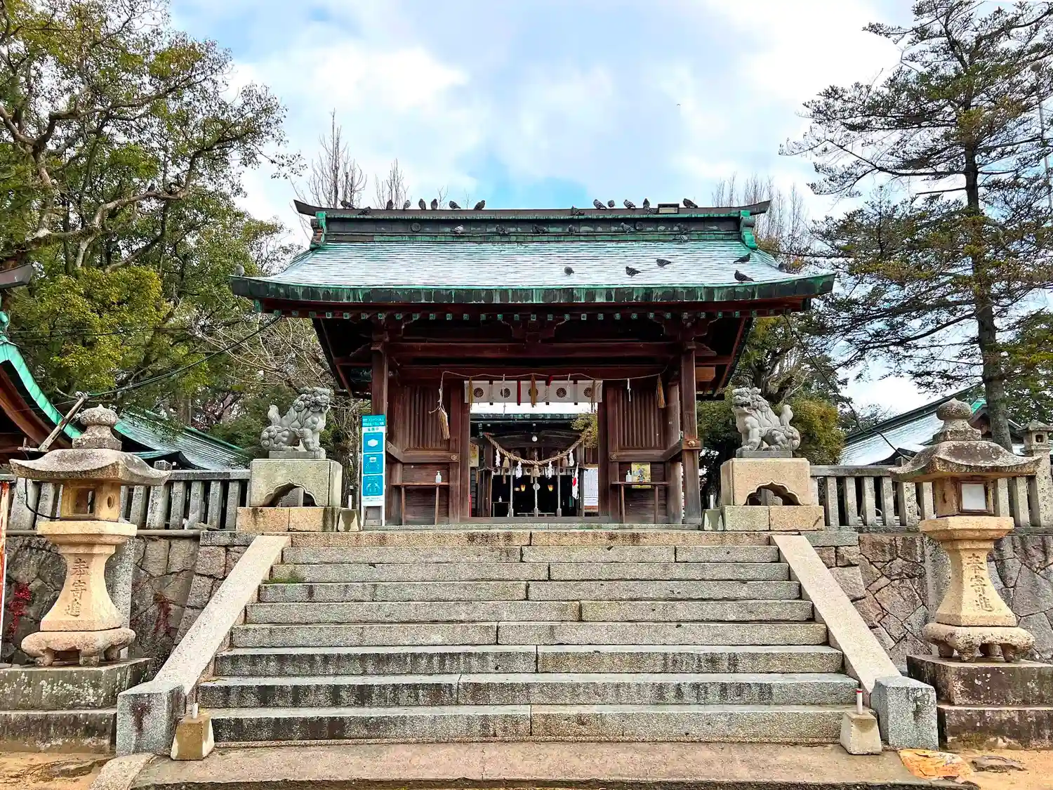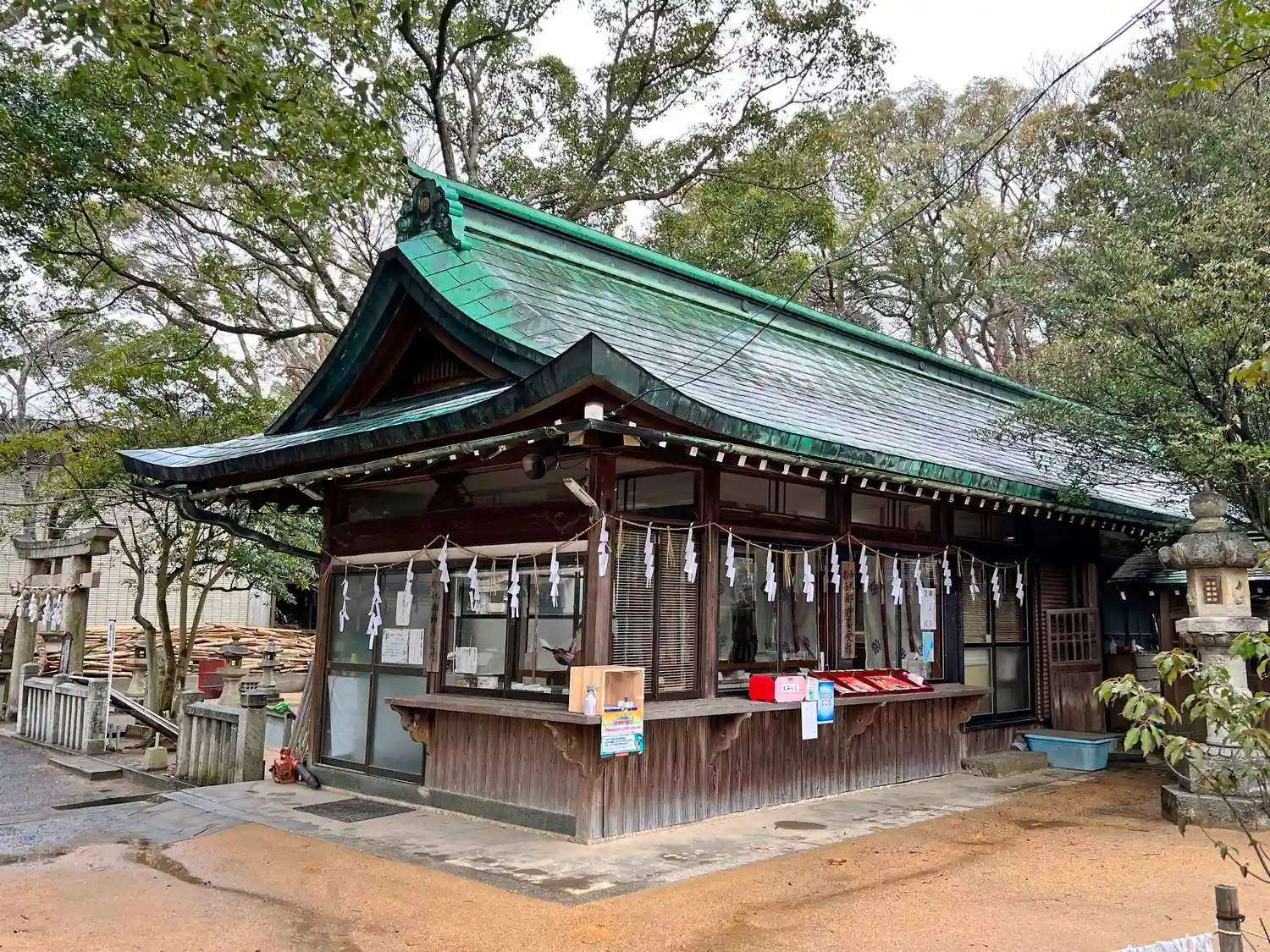 社殿と授与所を繋ぐ塀に<門>が設置されている。