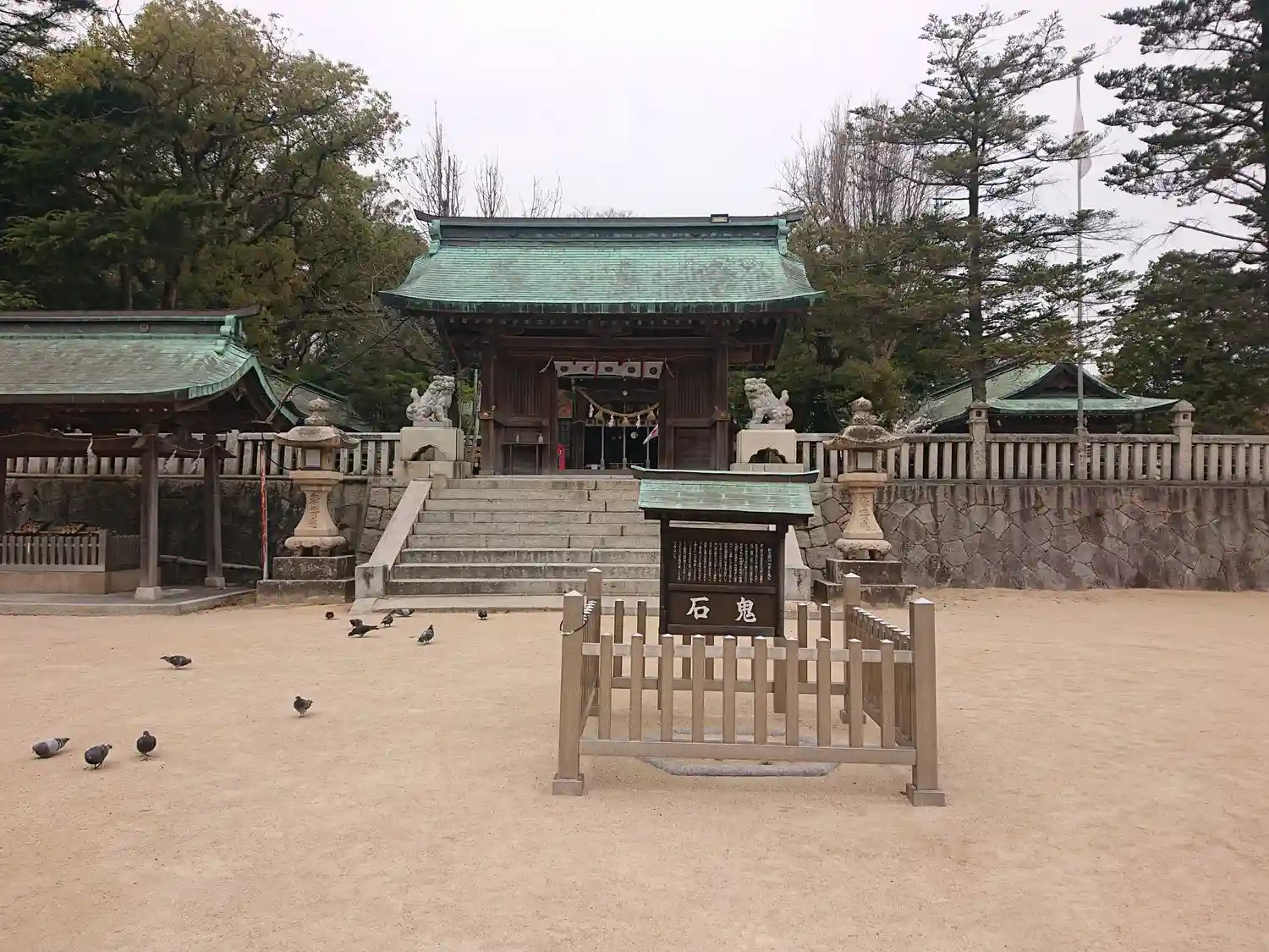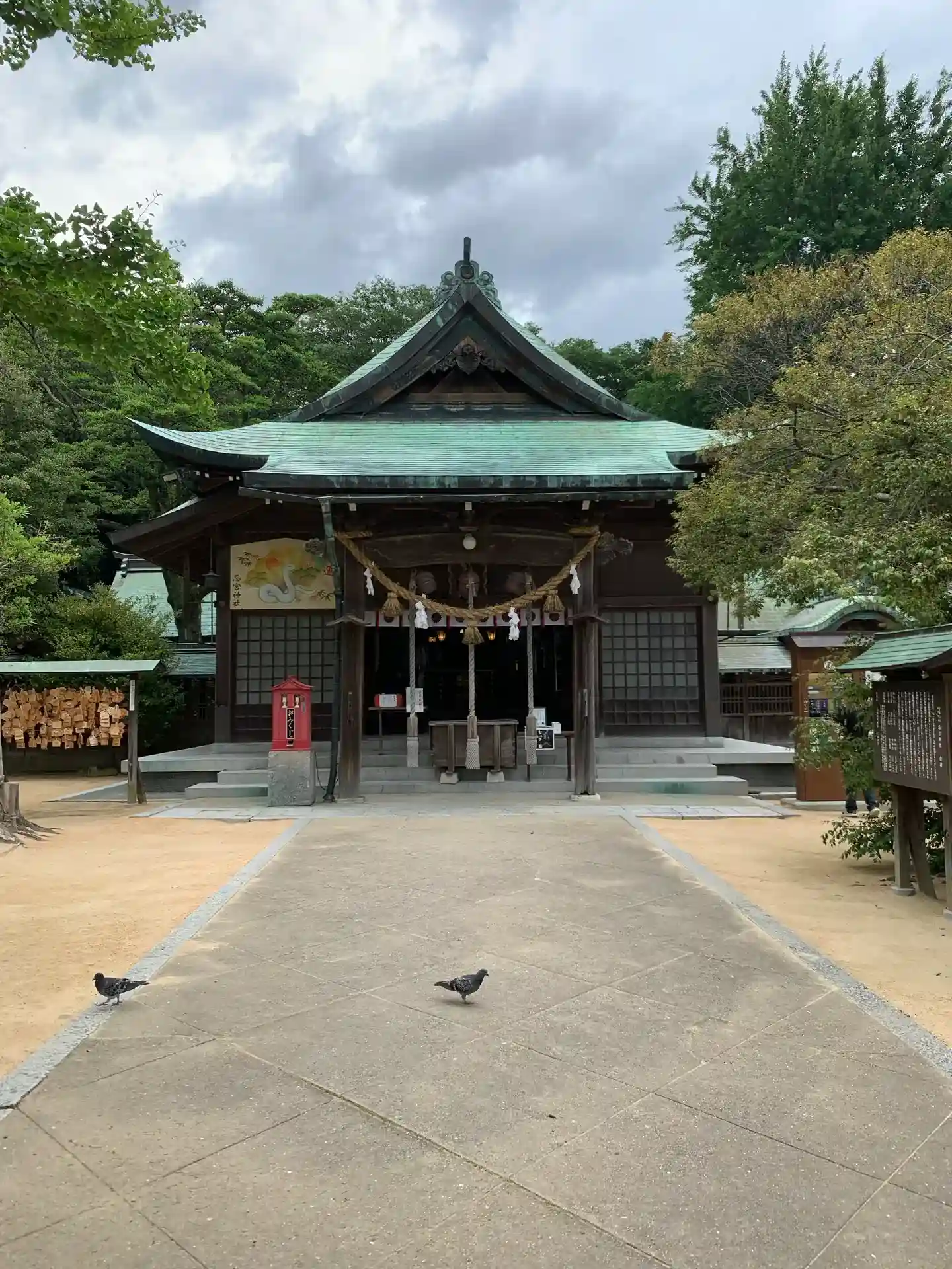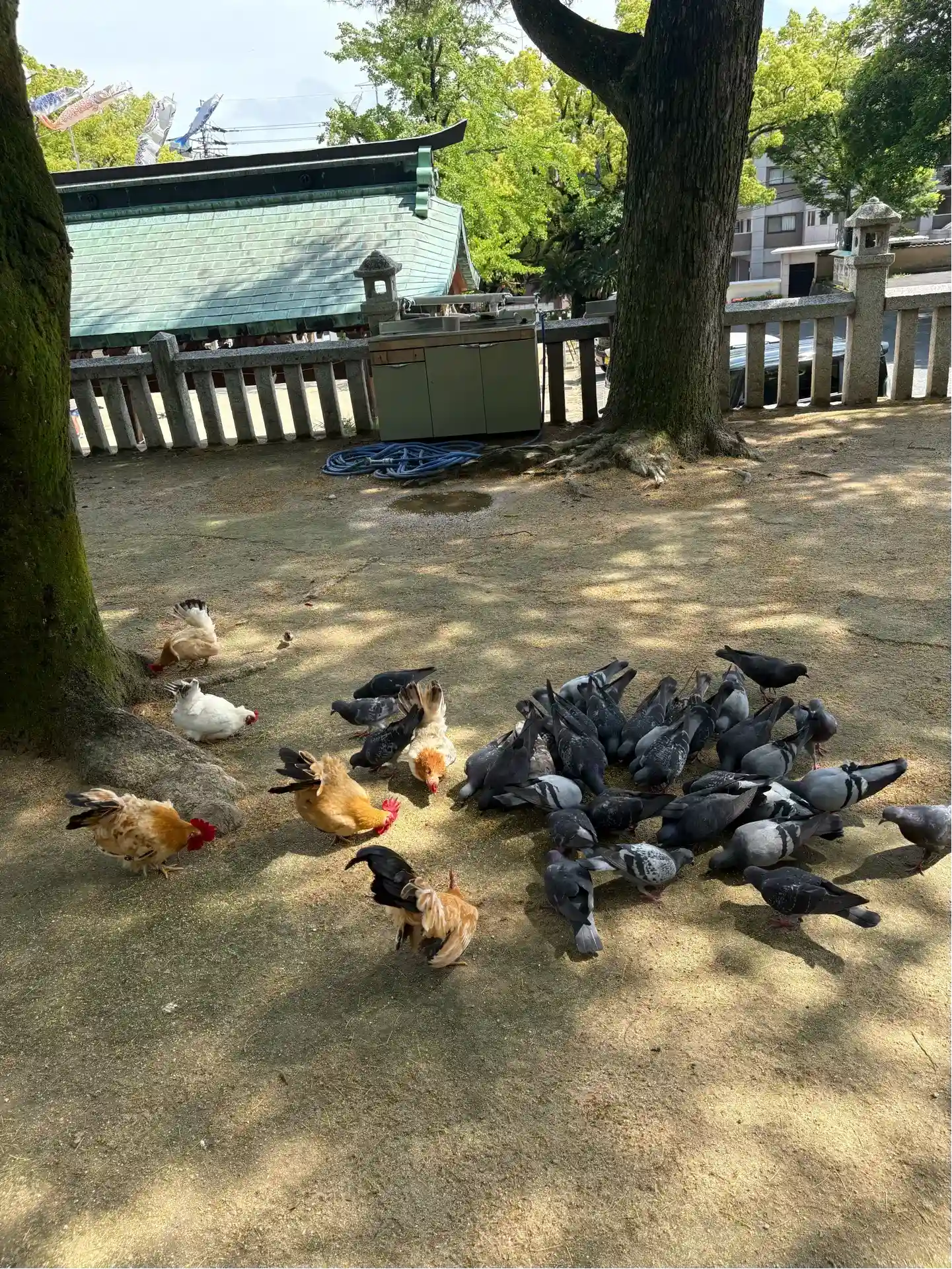 授与所にはハトの餌があり、親子連れが買いに向かった途端にまだ買ってもないうちからハトが寄っていって大群になってました。