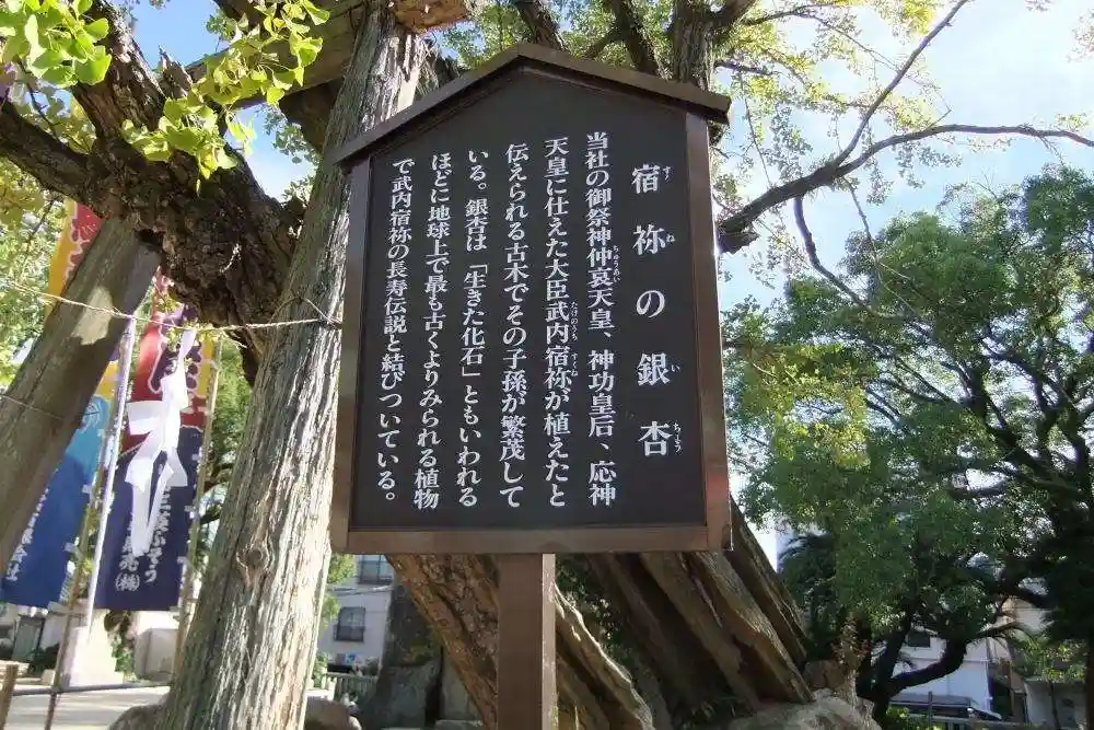 宿禰公孫樹:社殿広庭にあるイチョウで、…