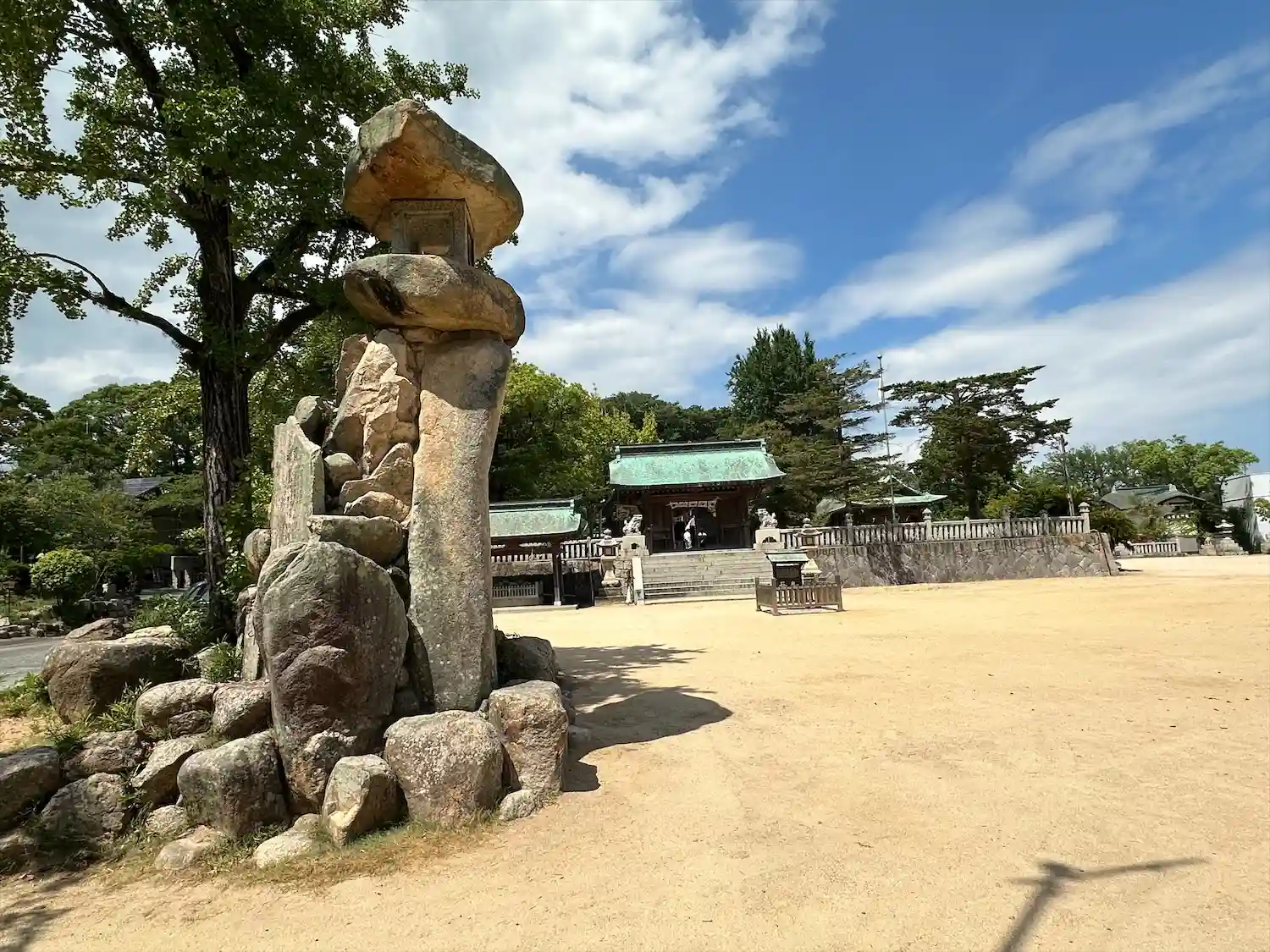 当社は瀬戸内海沖に飛地境内として満珠島と干珠島を持ち、原生林が天然記念物となっています。この島は神功皇后さまが住吉三神さまから賜った潮干珠と潮満珠からできたという伝承があり、源平合戦の壇ノ浦の戦いでも源氏軍が拠点としたそうです。