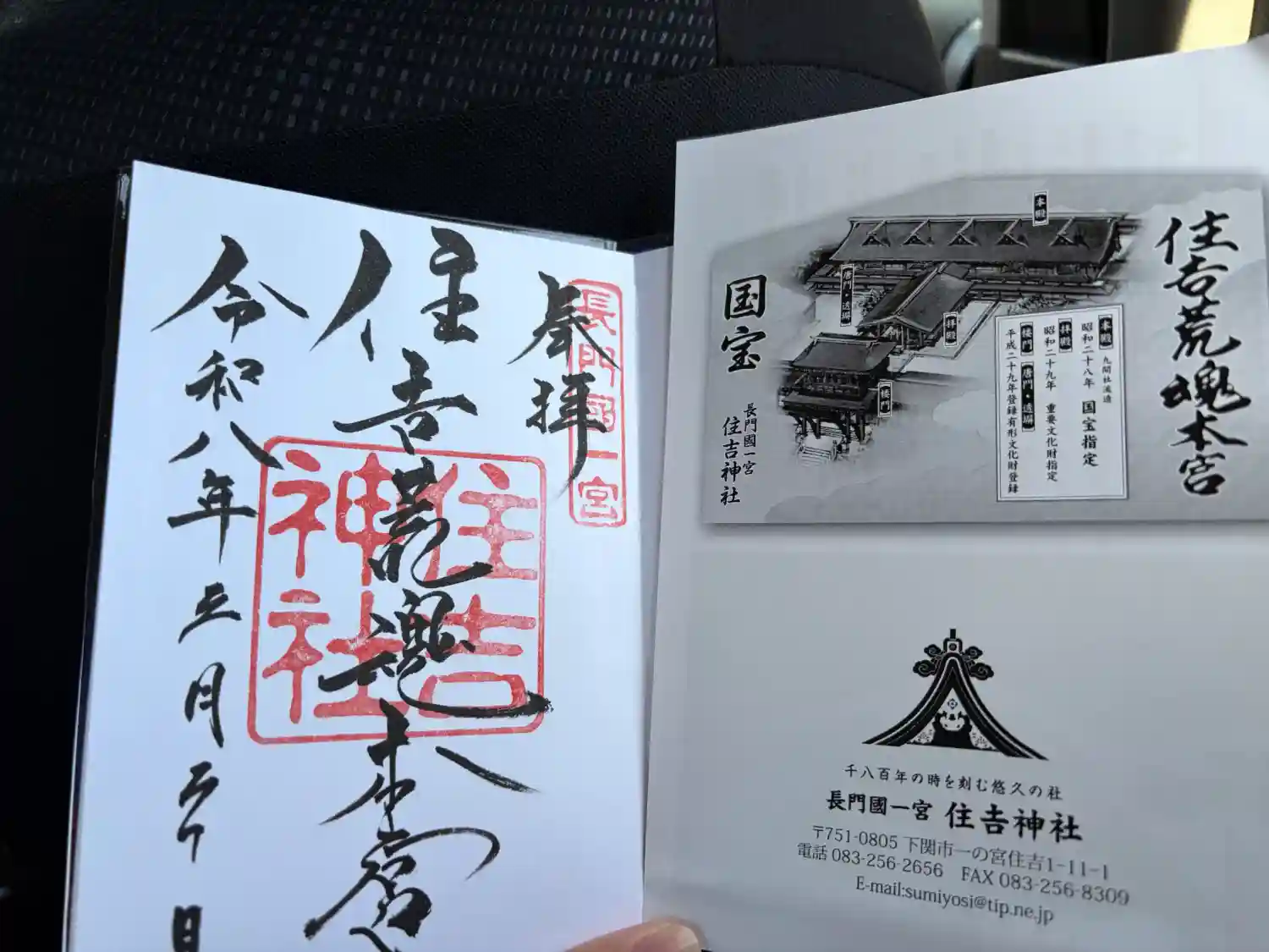 長門国一宮住吉神社の拝殿にて、恩湯の御朱印を重ねて、、、畏し!