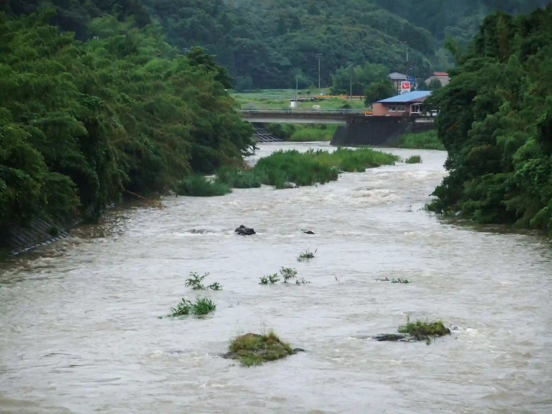 角島周辺の神社めぐりした時に参拝しました。立派な楼門が印象的でした。梅雨時期だったので近くくの粟野川が増水していました。