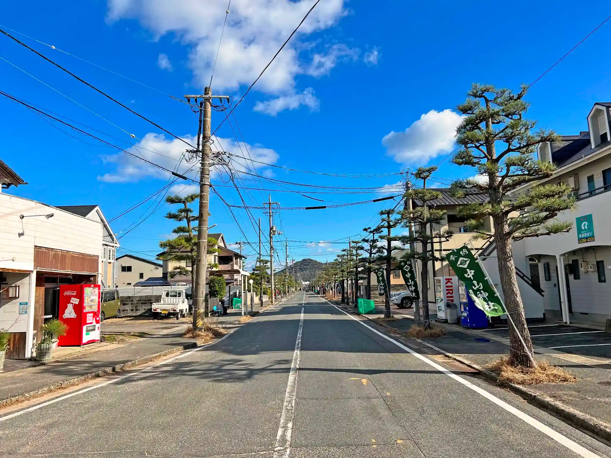 鳥居前の撮影位置から振り返ると、まっすぐの参道。昔から親しまれているのがよく分かる。