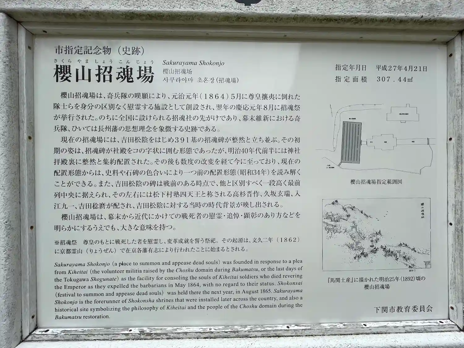 参道脇には、5人の公卿が桜山招魂場を参拝したことを記念する「七卿史跡」碑が建てられています