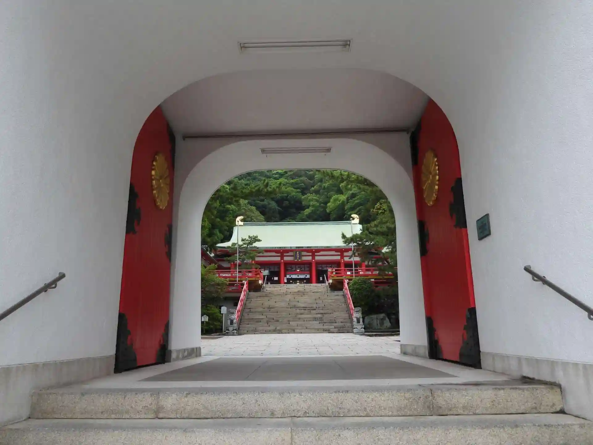 「陸の竜宮城」といわれるだけに、「一目」で鮮やかな朱塗りの「水天門」が目を引く神社です。平家伝説が残り、「源平壇ノ浦合戦」で、幼くして入水した清盛の孫にあたる「安徳天皇」が祀られています。