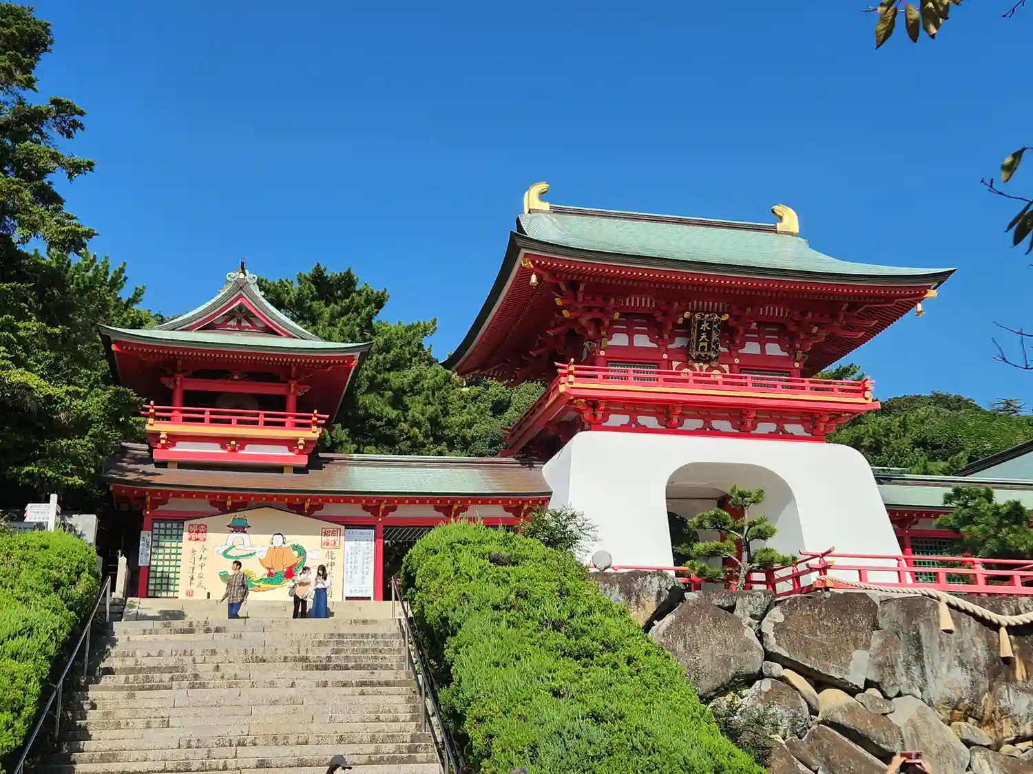 まず、竜宮城のような立派な水天門に感動しました。