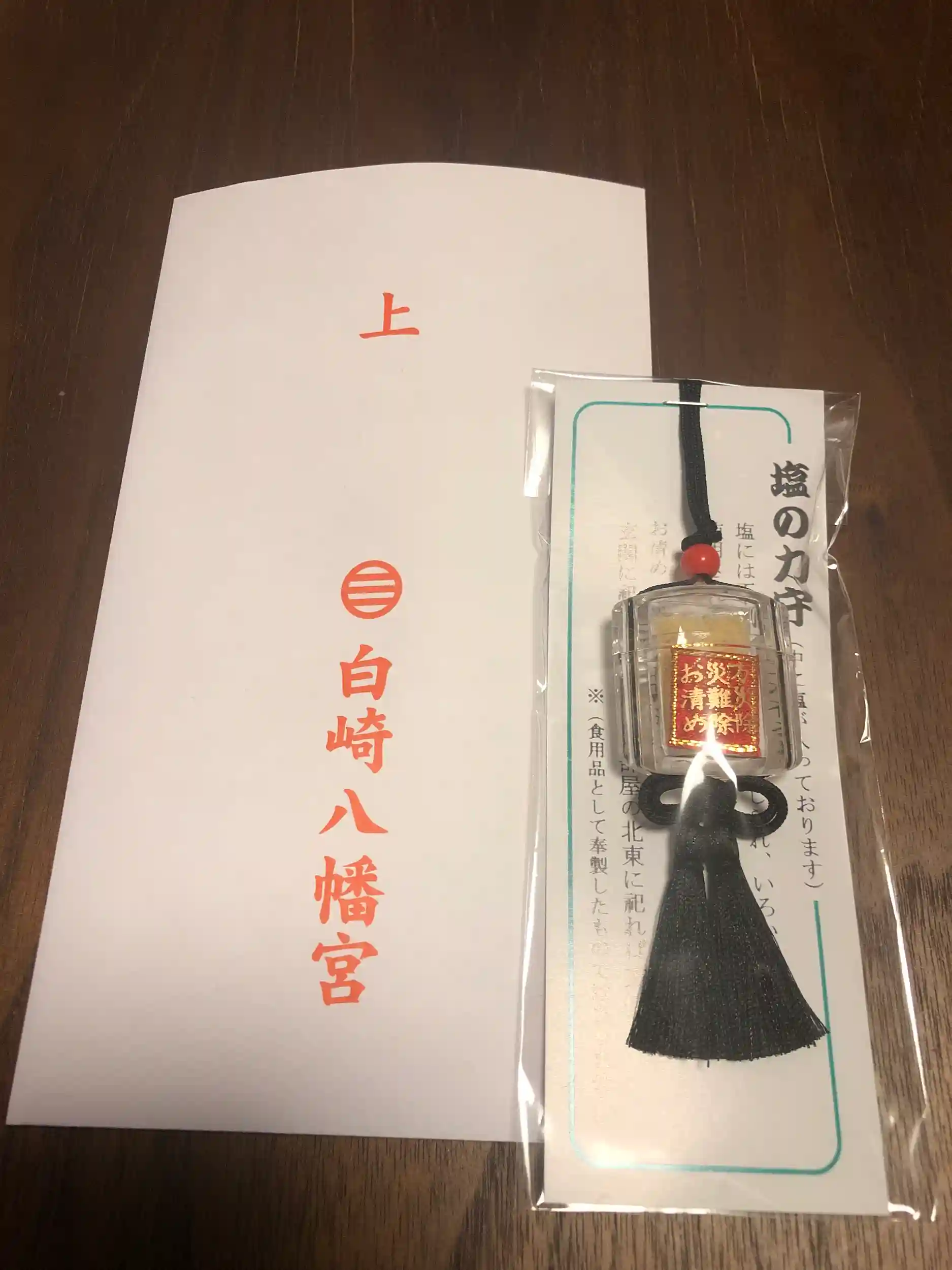 神塩の入った印籠型のお守りを授与してもらいました。