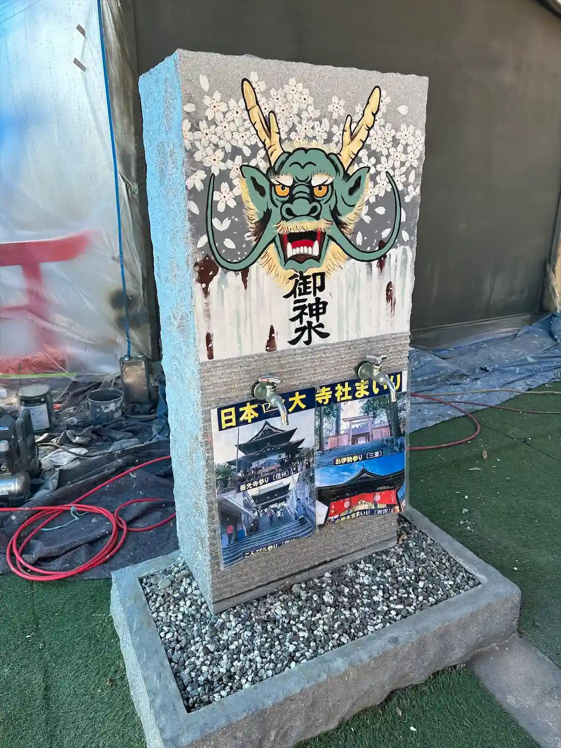 お参りしました🙏いつのまにかオートバイ神社🏍️できてた😳御刻印無し😢狛犬さんはメイク💄あり😁