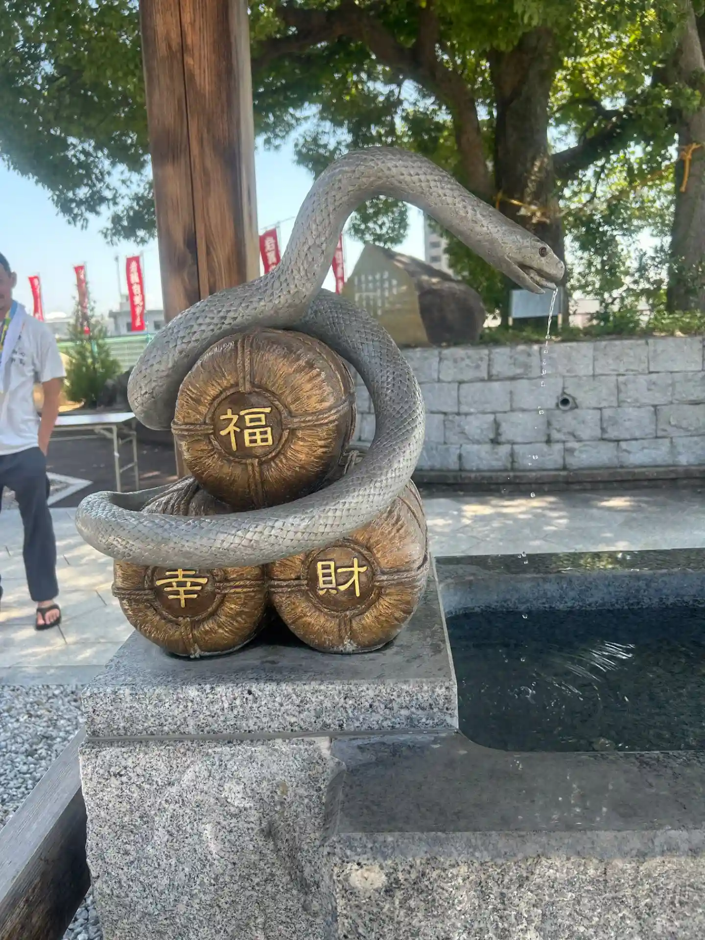 手水舎です。ここは珍しく竜ではなくて白蛇から水が出ていました。