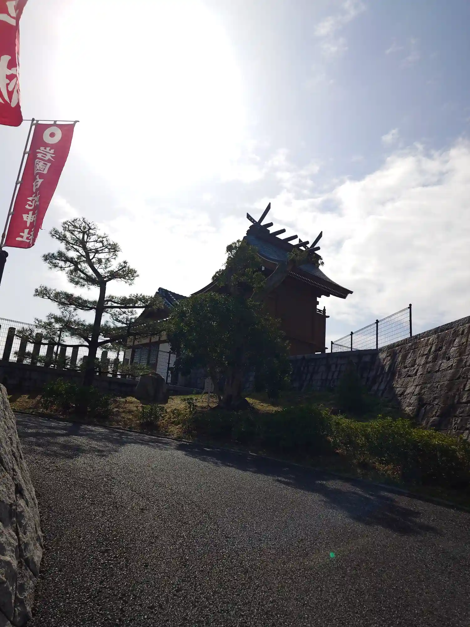 岩国白蛇神社正面から坂を登ると日の光とともに御本殿が見えます。