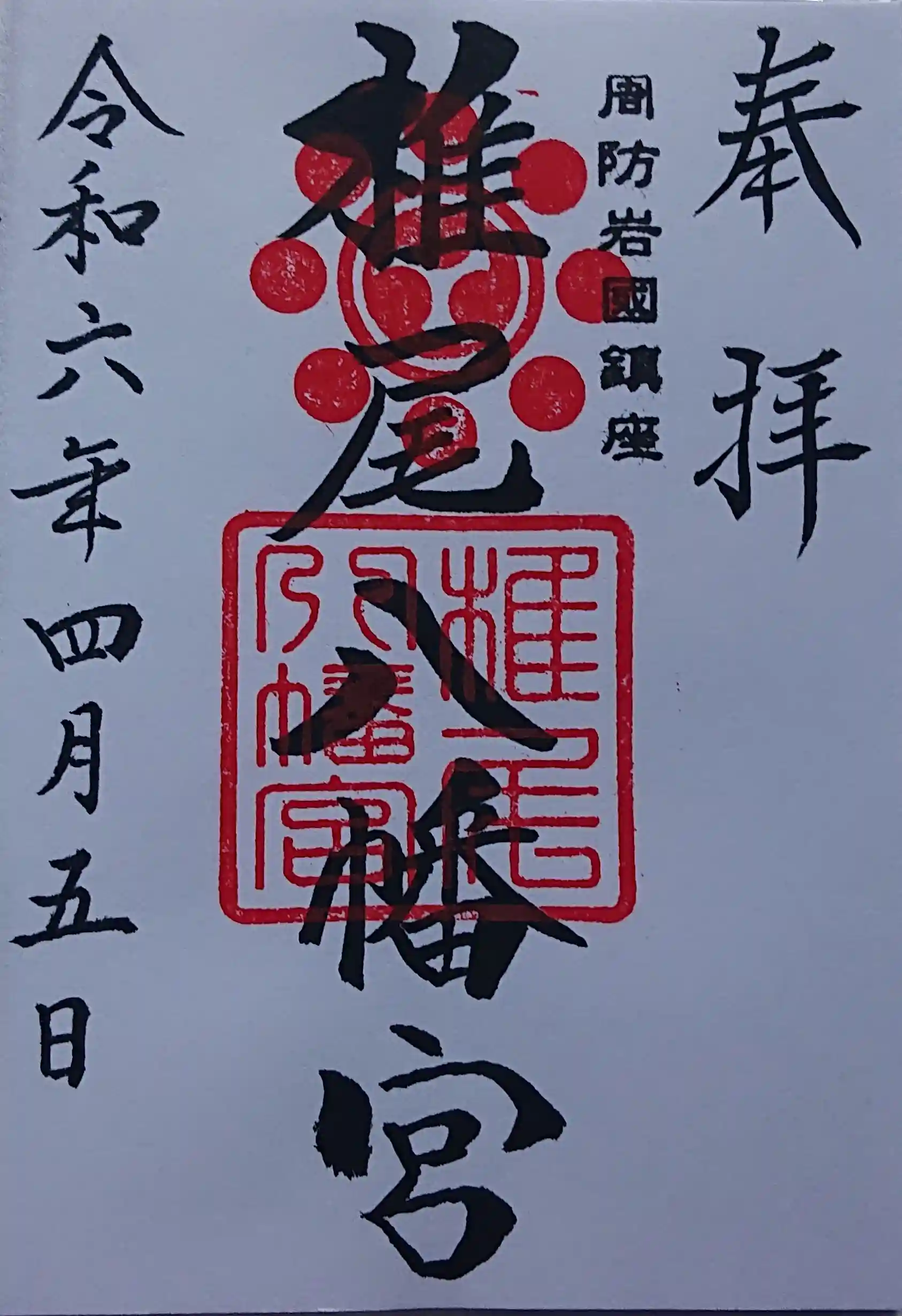 御朱印は岩国護国神社も頂けますが、椎尾八幡宮のみ頂きました。