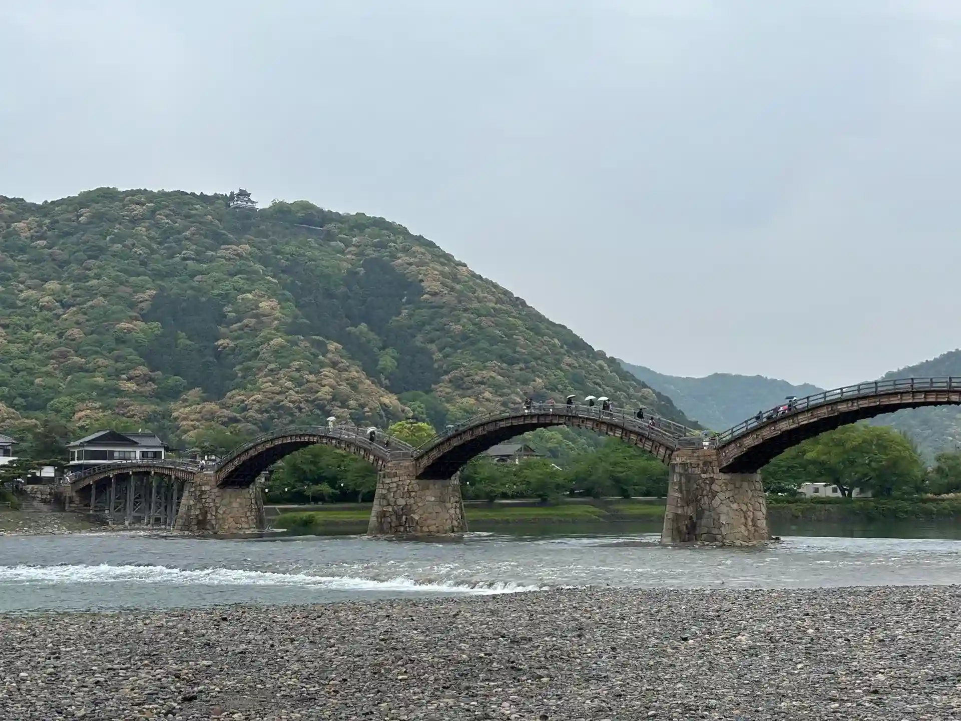 雨の錦帯橋。ここからは車を河原に止めて歩きます。近くで御橋印なんてものをゲットし、階段をヒイヒイ登って椎尾八幡宮へ。なんとも雰囲気のある場所でした。御朱印は500円で直書き。岩国護国神社のものとともにいただきました。