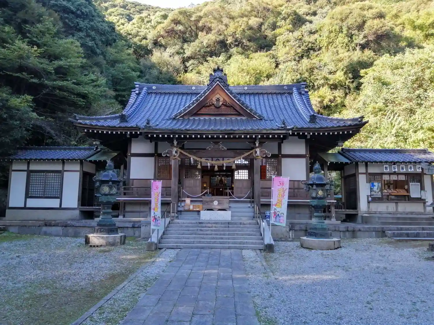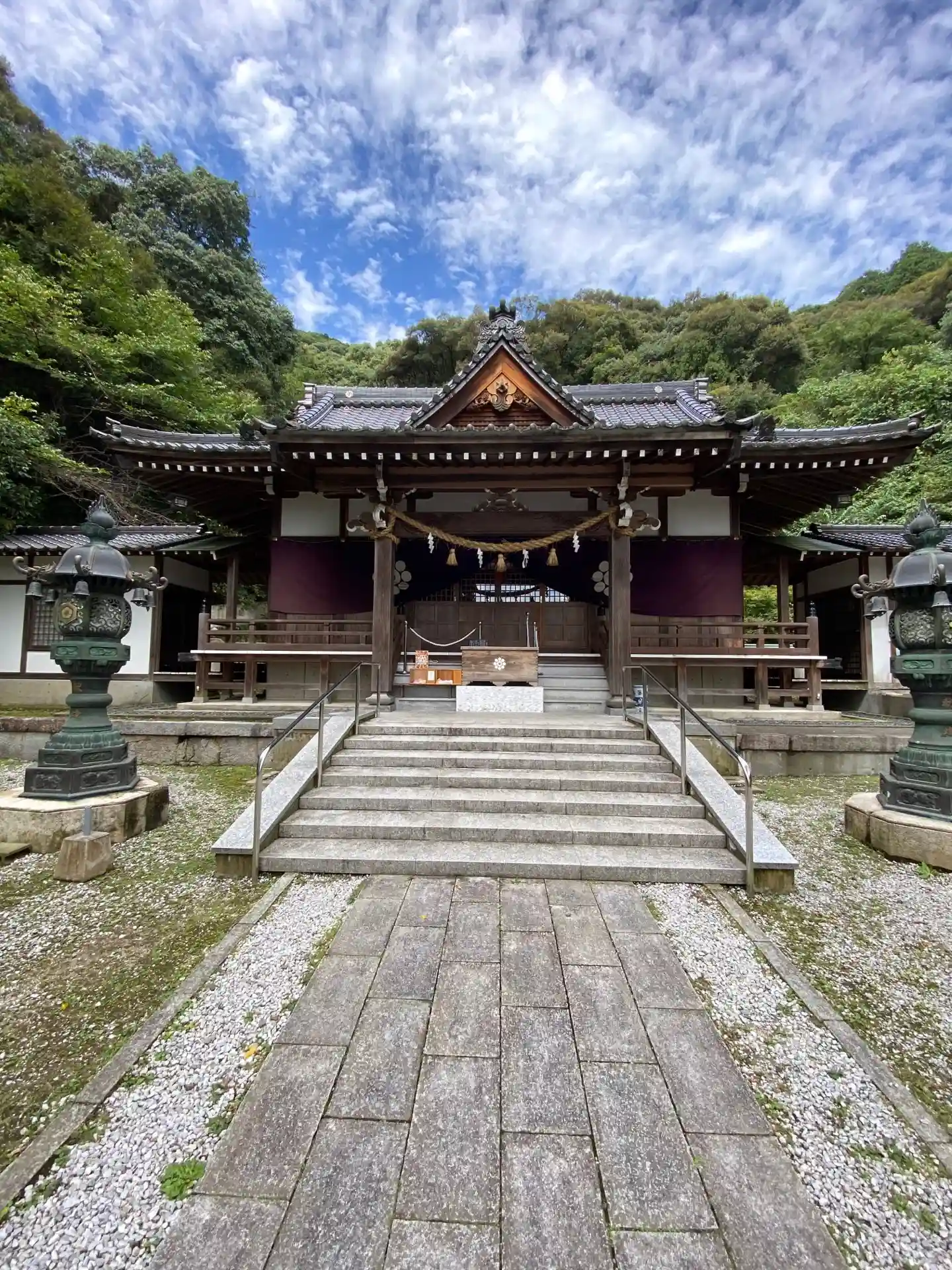 岩国城ロープウェイの乗り場のすぐ右に鎮座されています、2004年5月13日、 拝殿が火災により焼失…