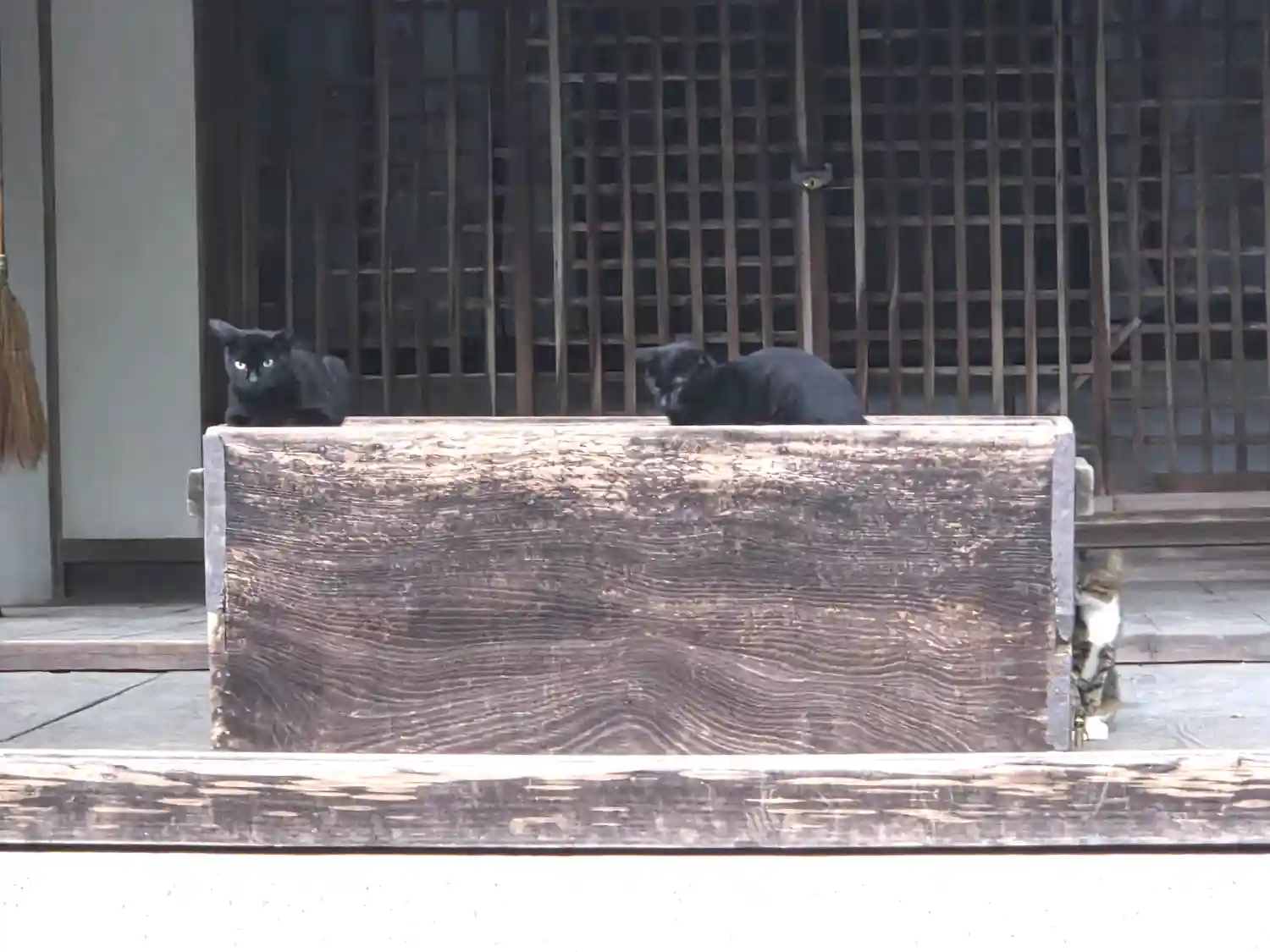 近付いてみると賽銭箱のまわりに猫ちゃんたちが雨宿り中