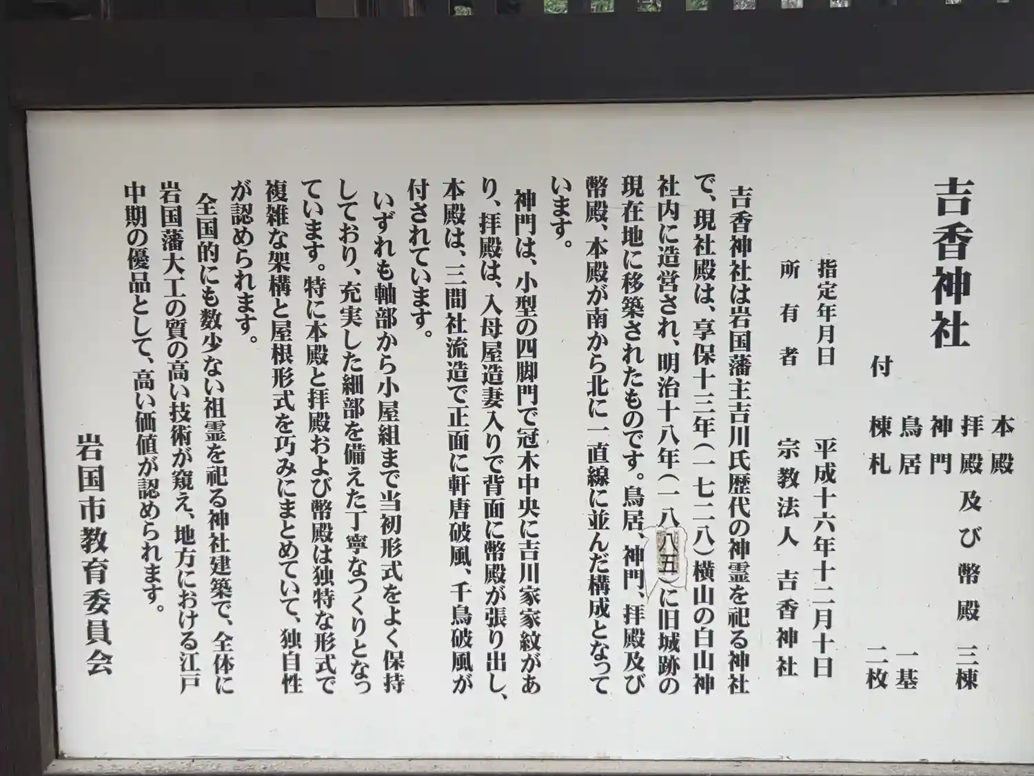 吉香神社の説明