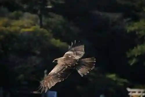明神池を見下ろす高台にあります。明神池景色を鑑賞するために毛利公が建立した神社です。たしかに大きな庭園にも見えますね。野生のトビのエサやり?ができます。パンなどをもっていたらトビがくるので注意です😊