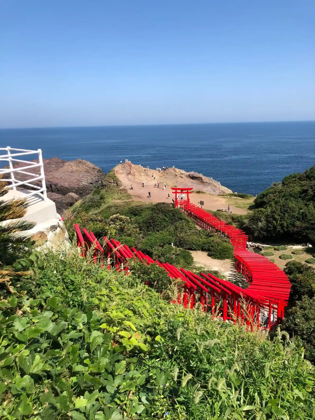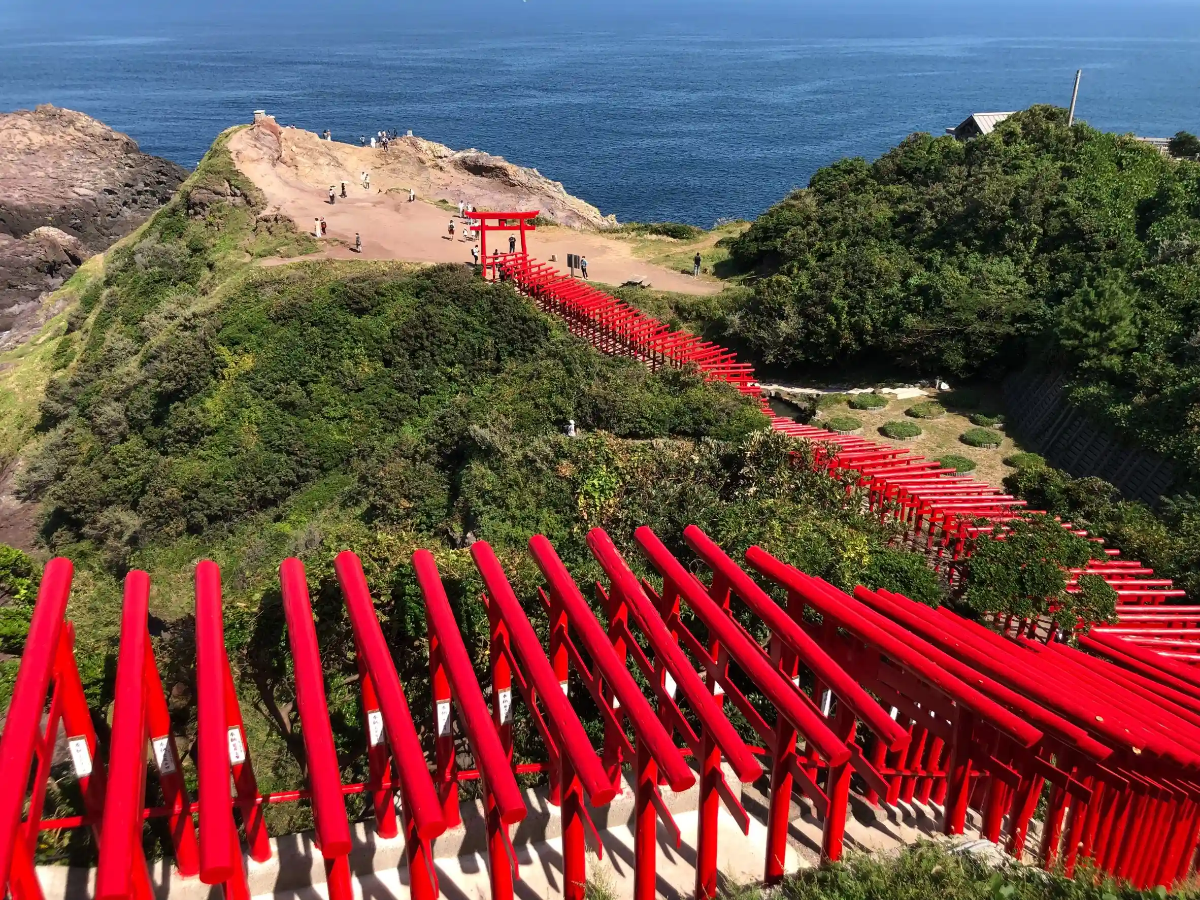 断崖まで続く赤鳥居が