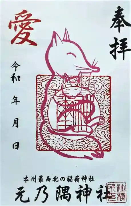 台紙の下部に「本州最西北の稲荷神社 元乃隅神社」と横書きで書かれて、神社印が押されています。