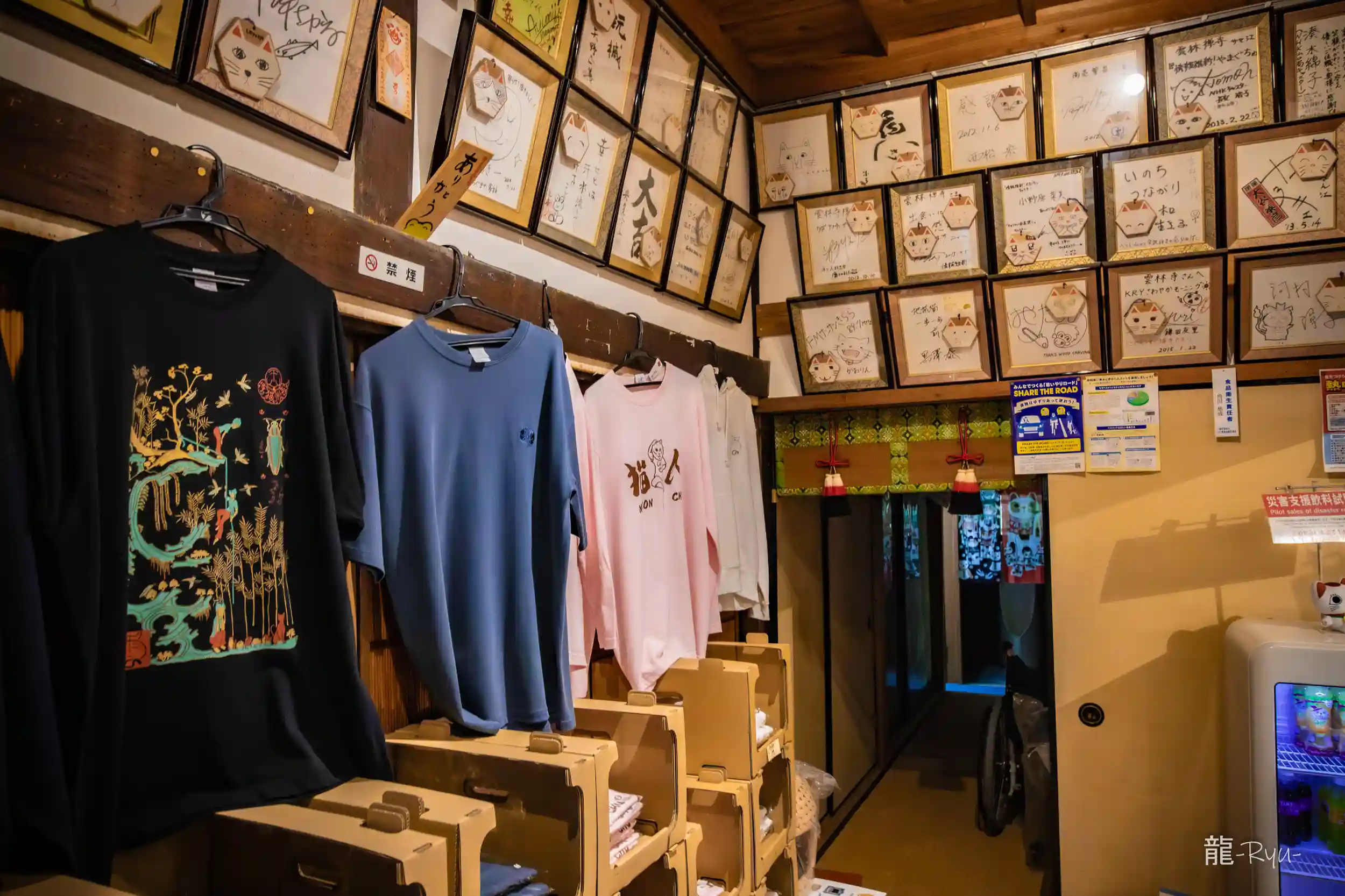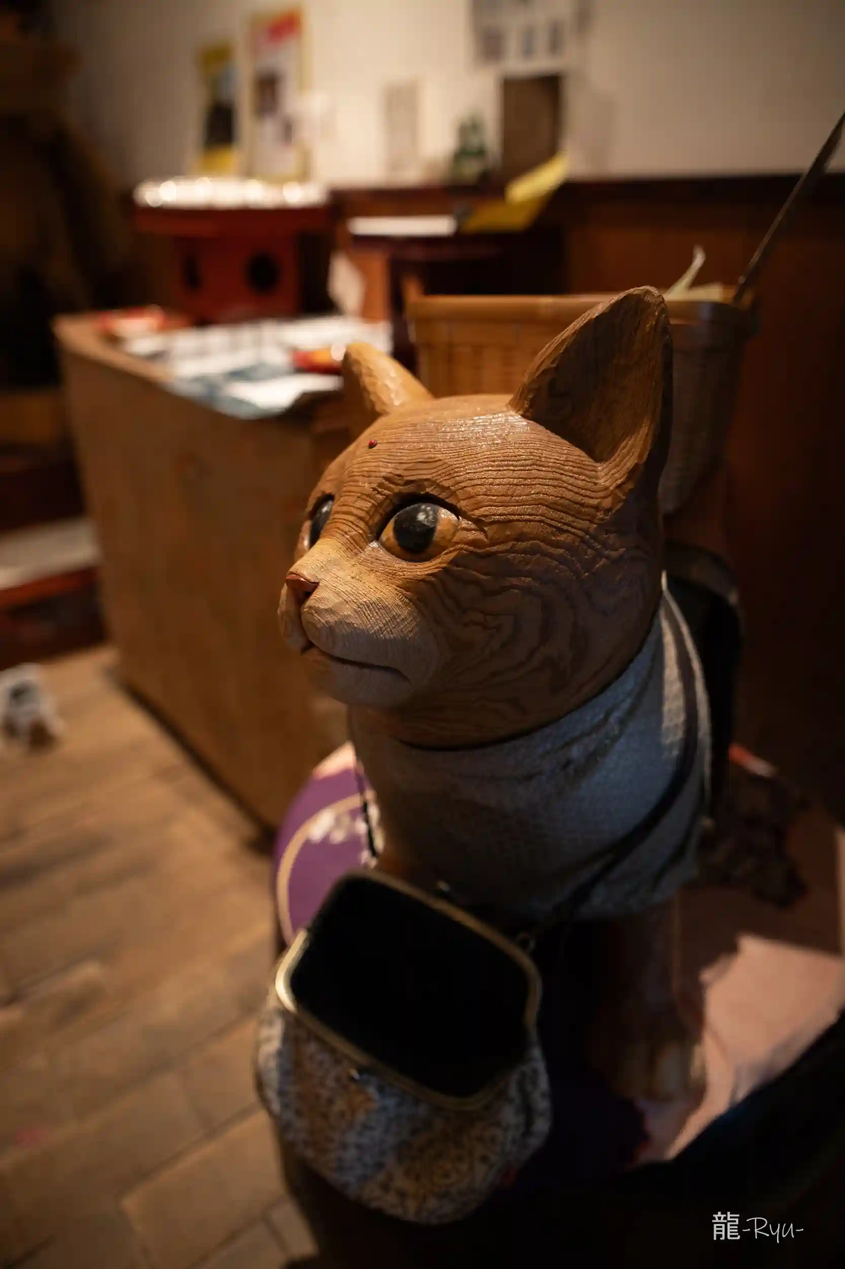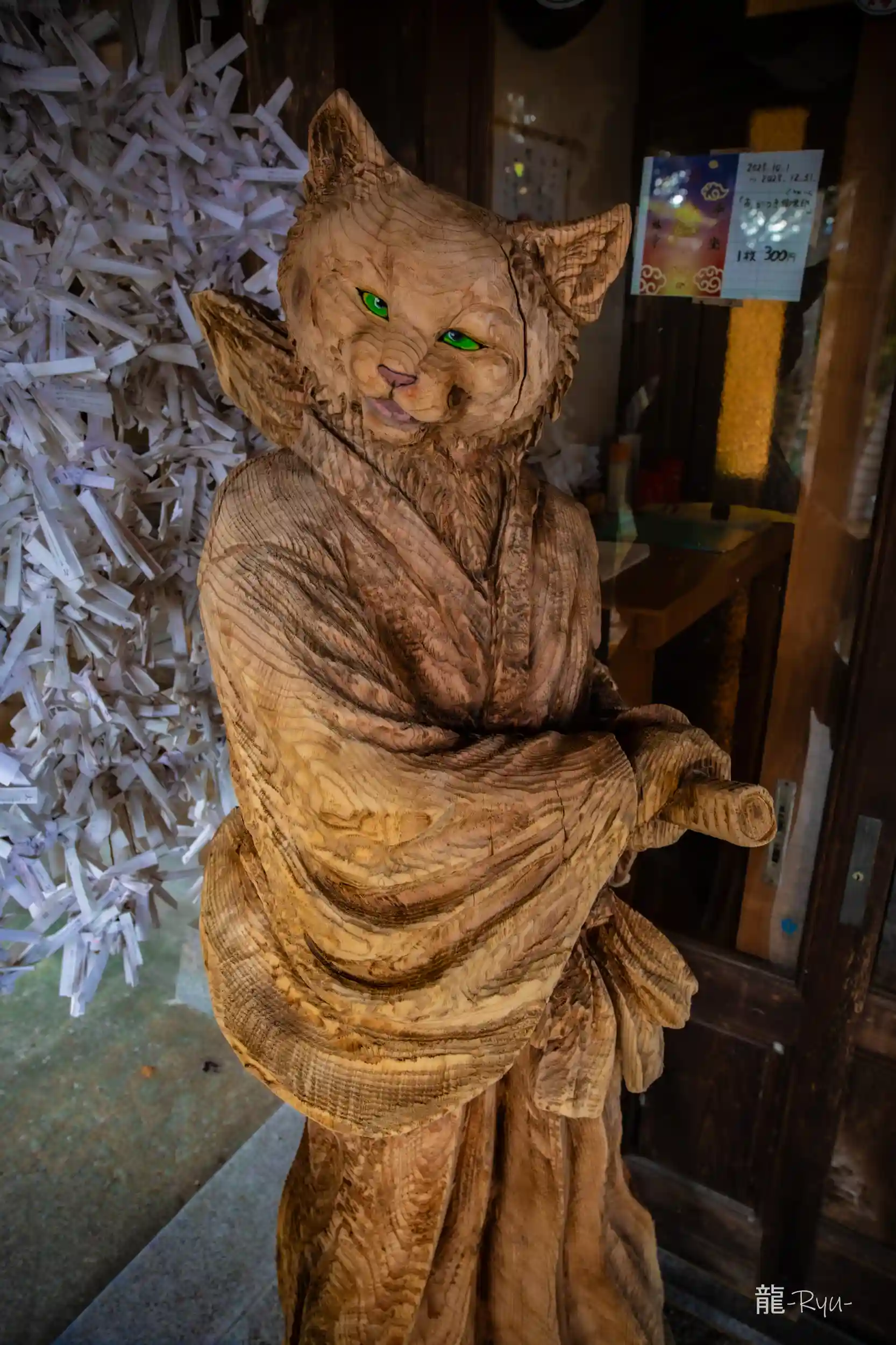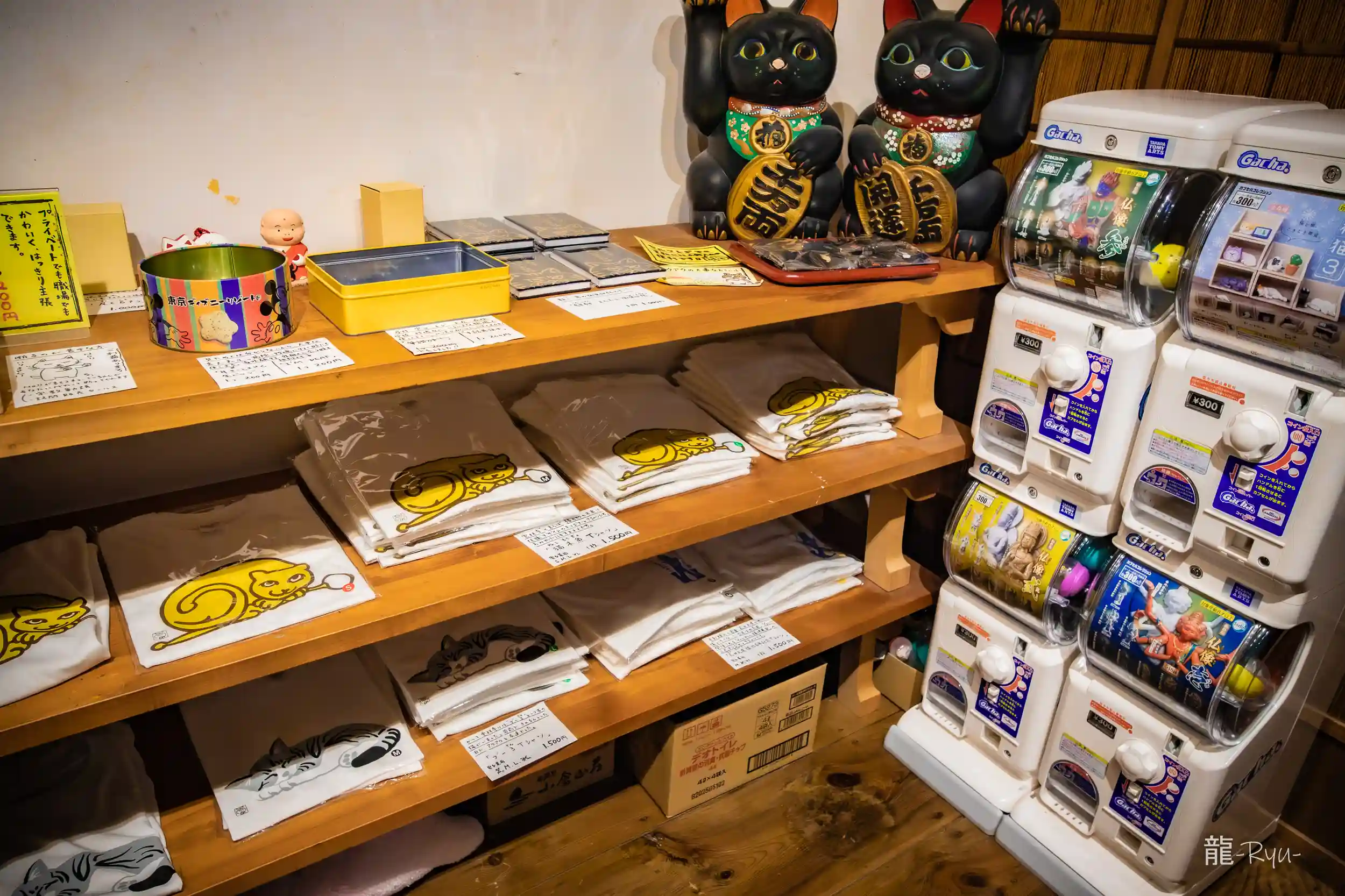 境内や寺院内は猫の木彫りや猫グッズが沢山