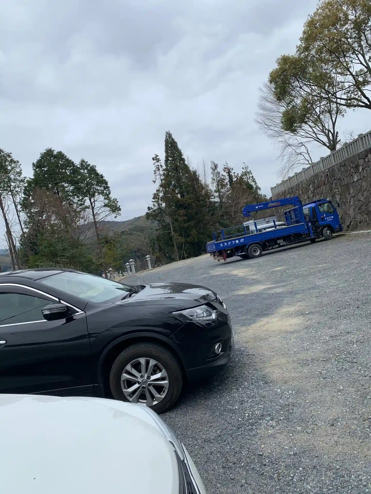 建築中で楼門入口近くの駐車場を